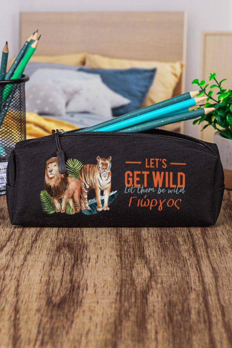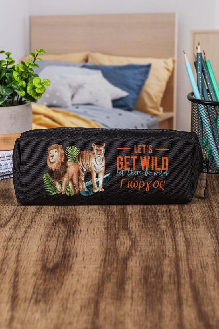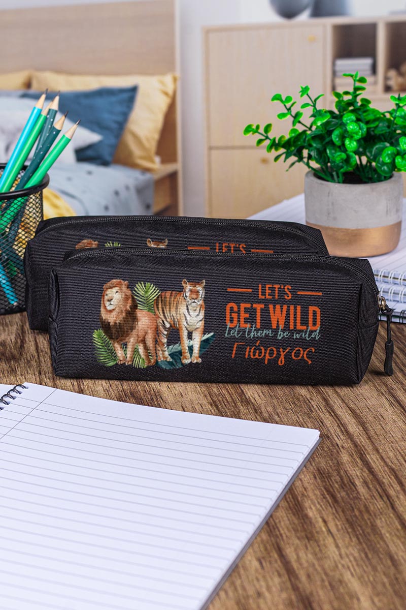 Σχολική Κασετίνα με Όνομα, σε Μαύρο Χρώμα & Σχέδιο Be Wild