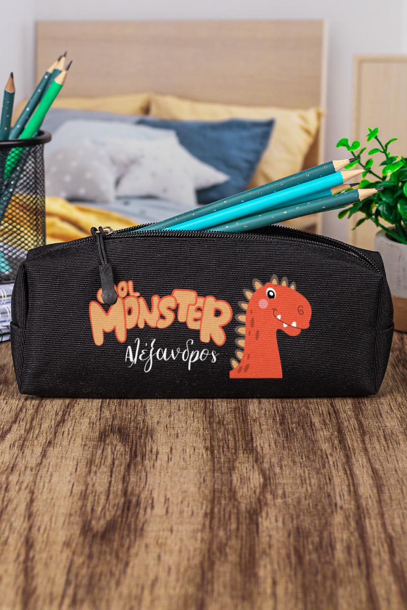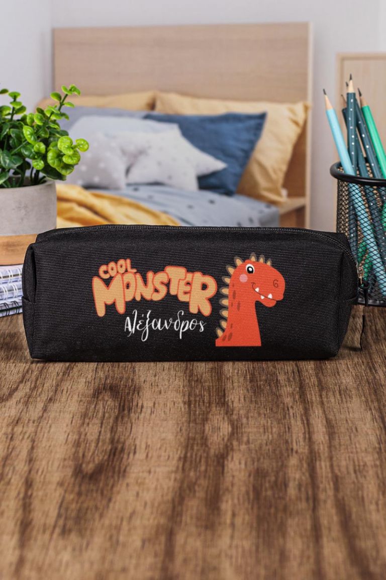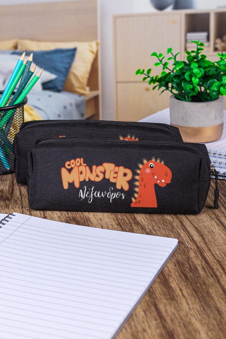 Σχολική Κασετίνα με Όνομα, σε Μαύρο Χρώμα & Σχέδιο Cool Monster