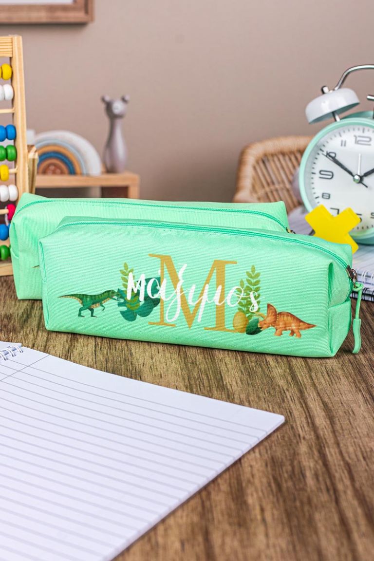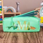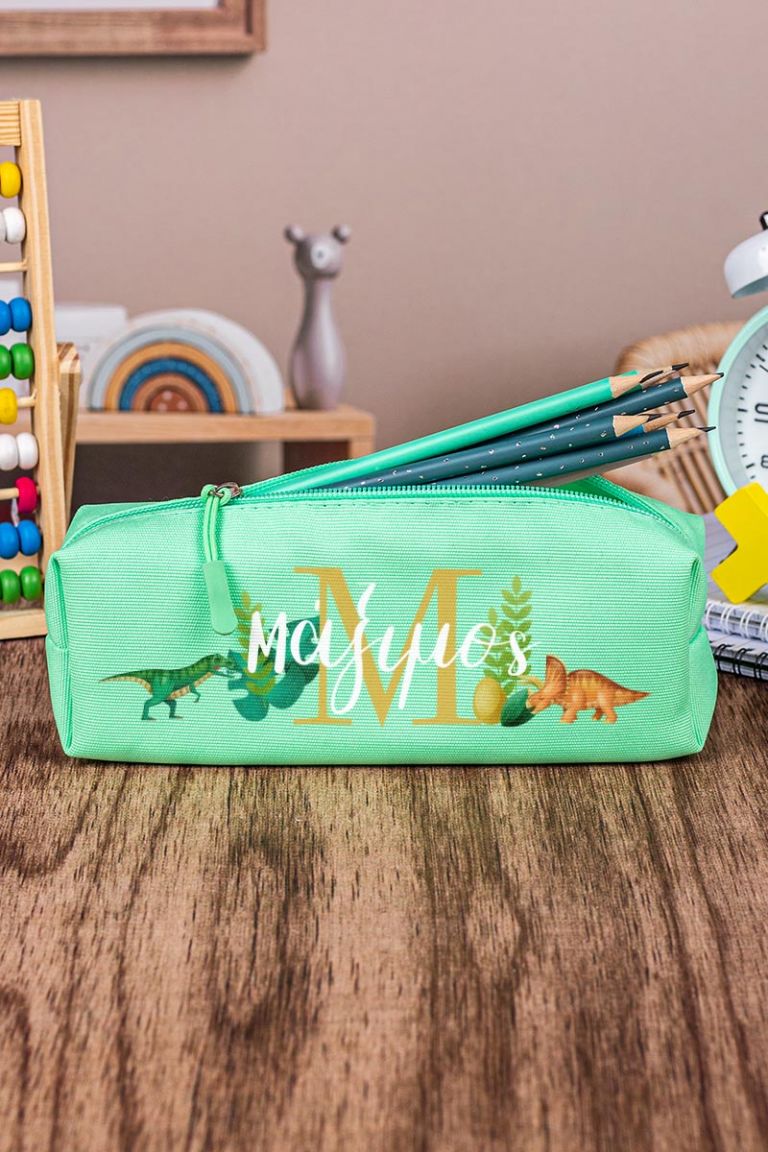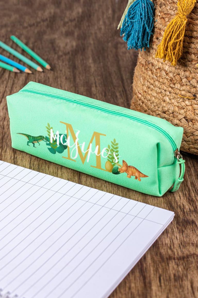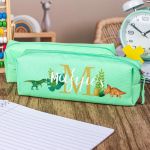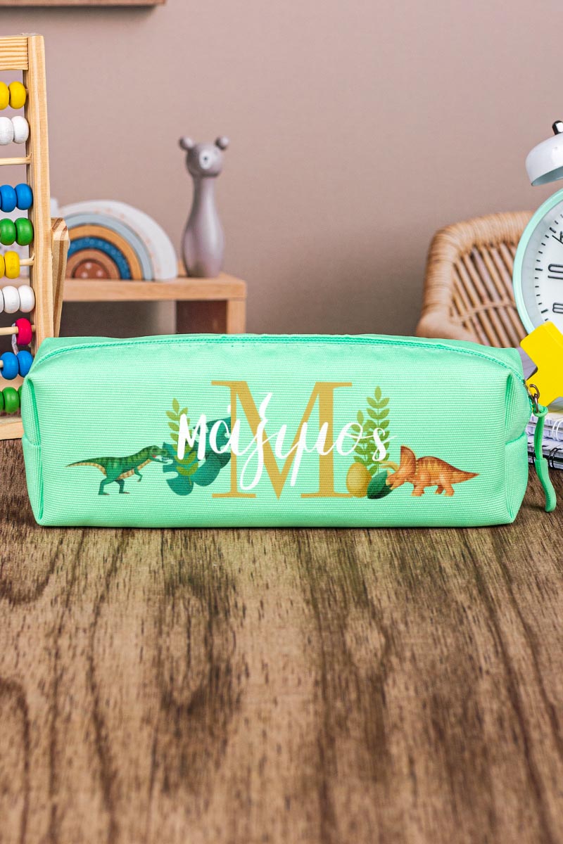 Σχολική Κασετίνα με Όνομα, σε Πετρόλ Χρώμα & Σχέδιο Dino Monogram