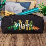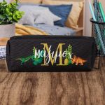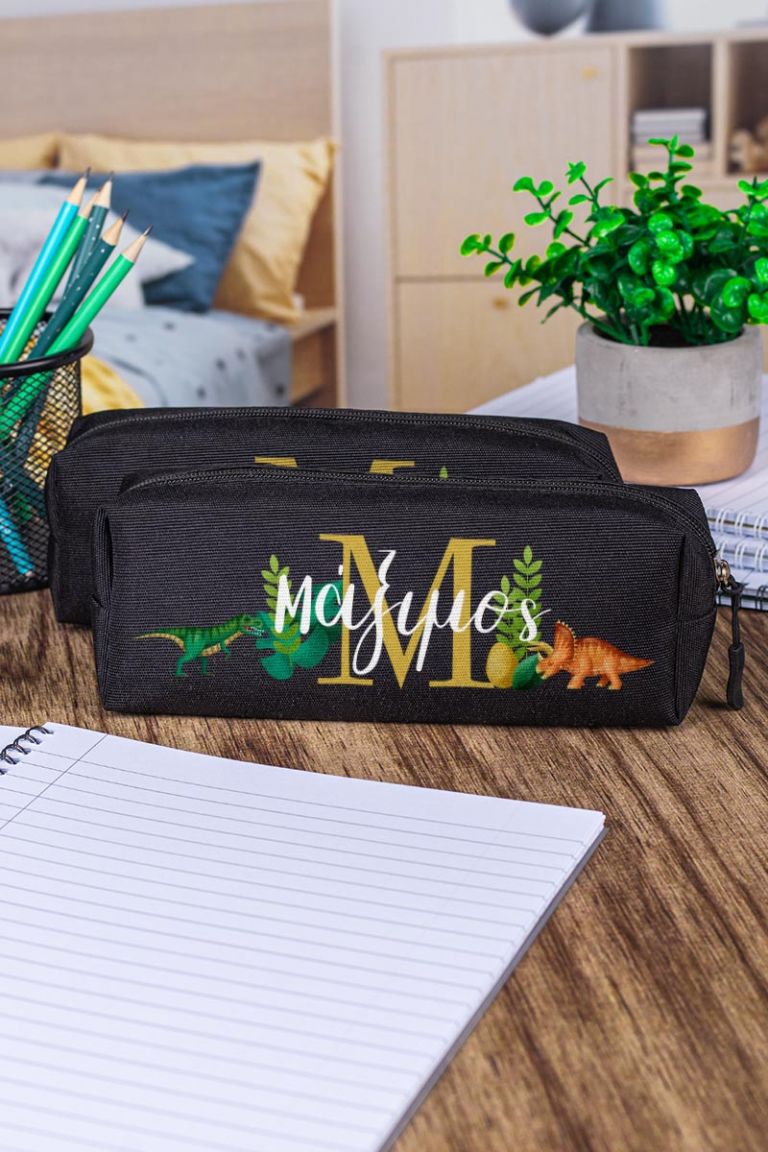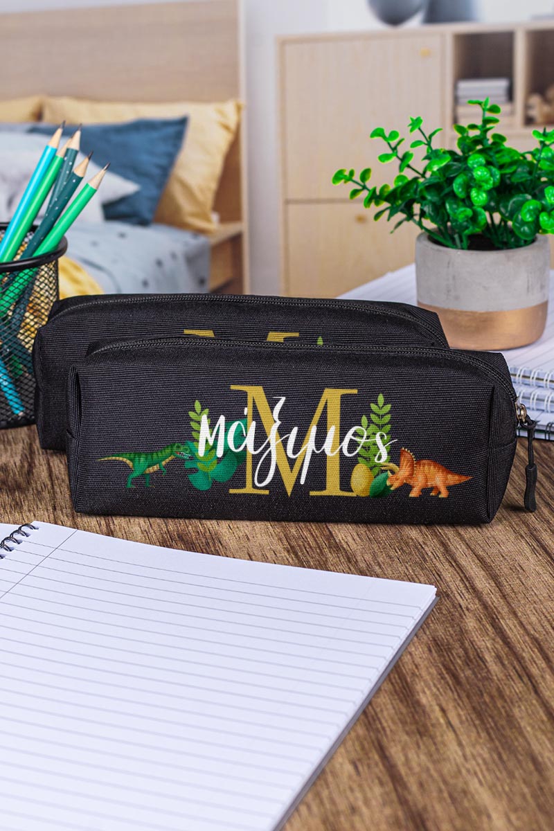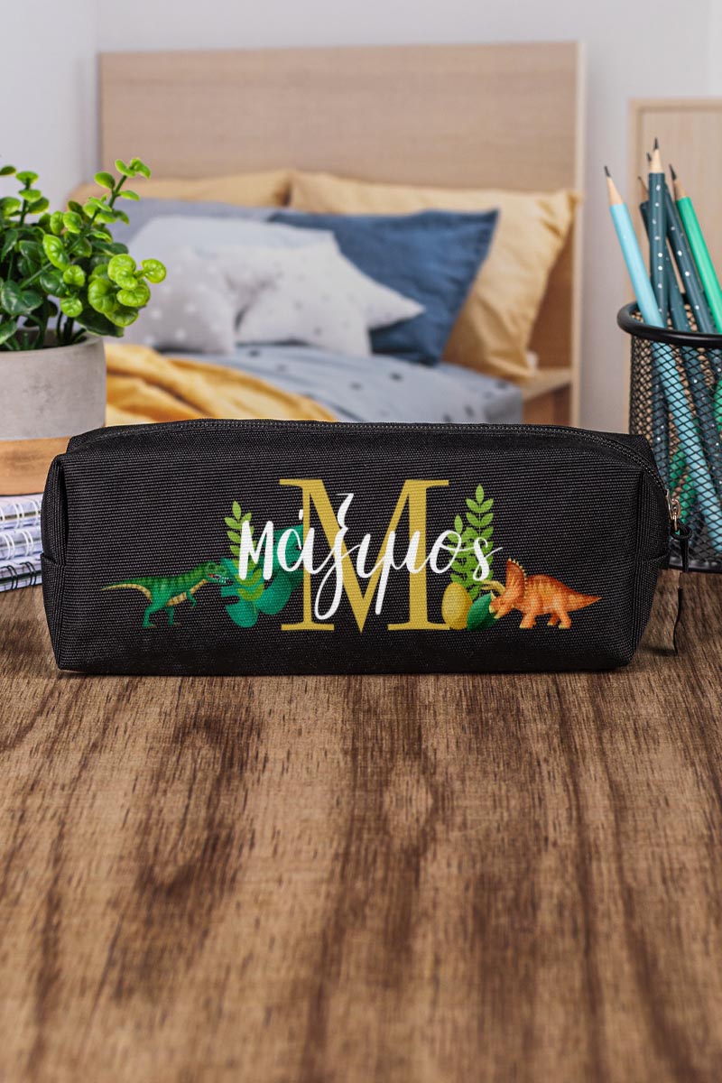 Σχολική Κασετίνα με Όνομα, σε Μαύρο Χρώμα & Σχέδιο Dino Monogram