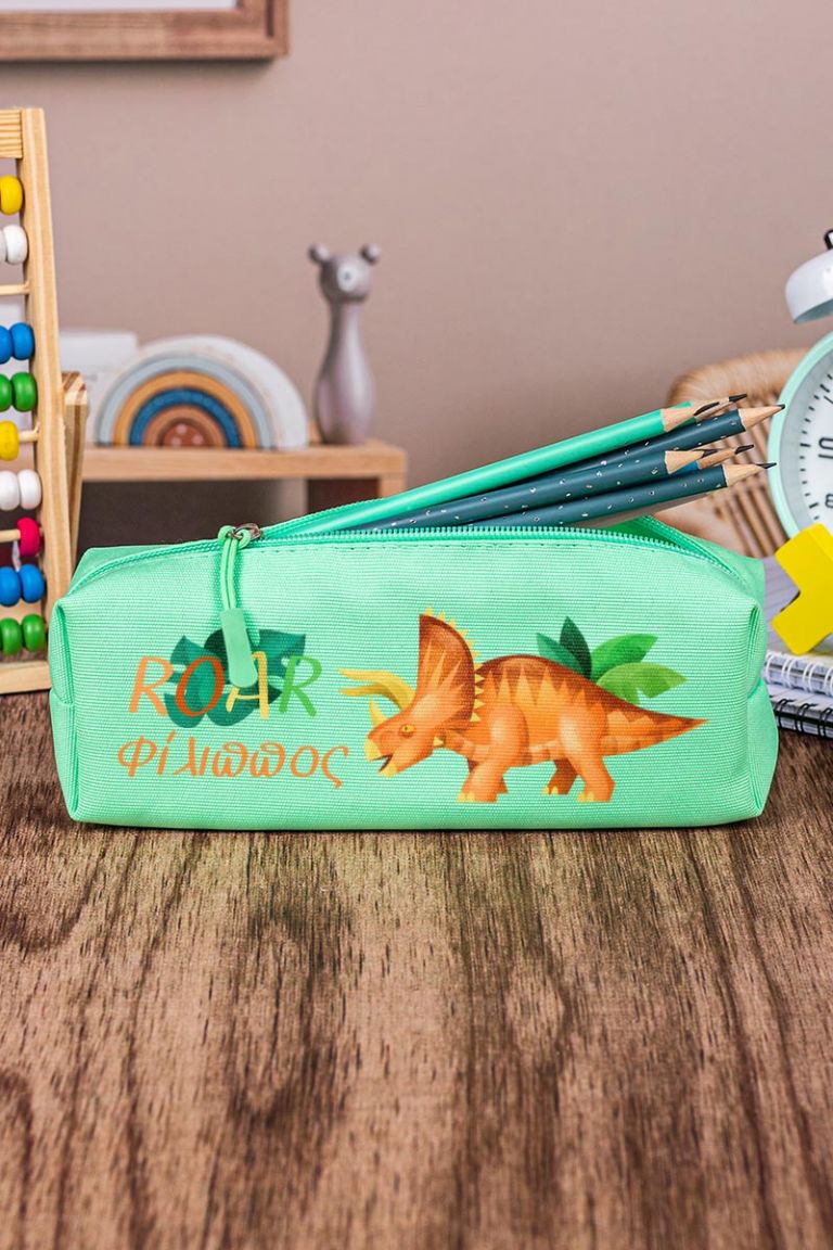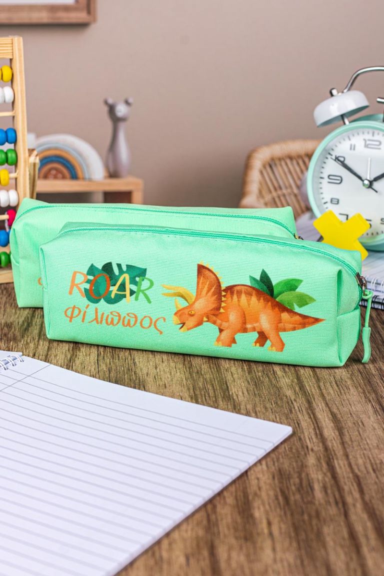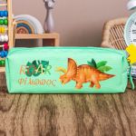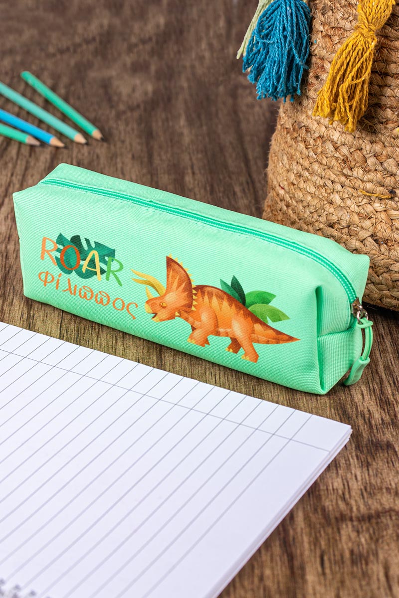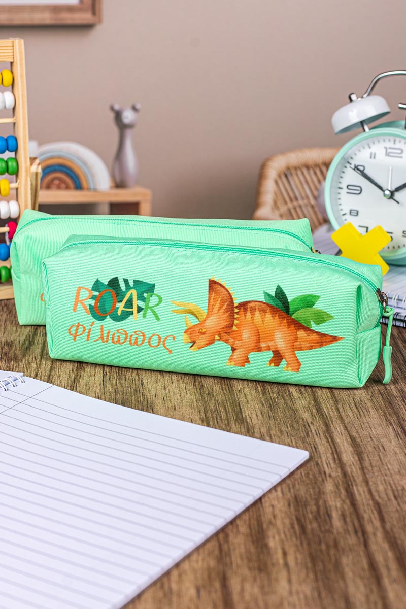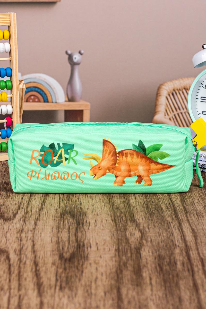 Σχολική Κασετίνα με Όνομα, σε Πετρόλ Χρώμα & Σχέδιο Dino Roar