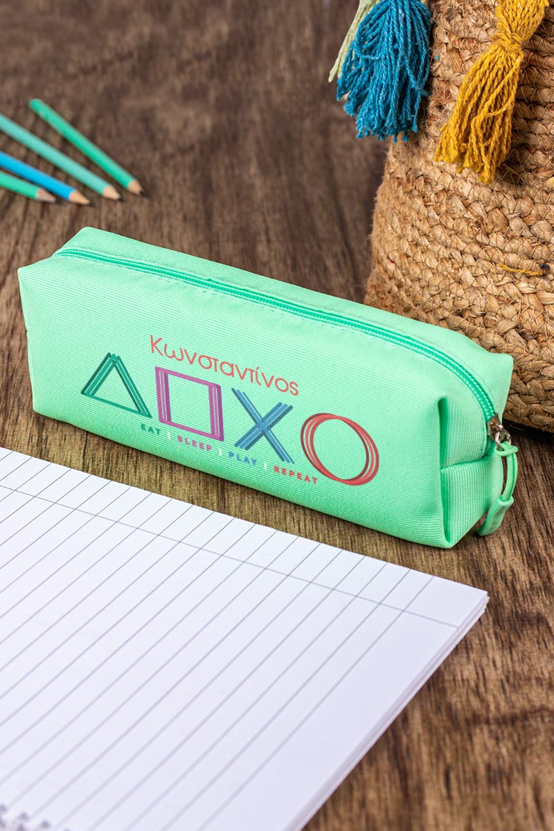 Σχολική Κασετίνα με Όνομα, σε Πετρόλ Χρώμα & Σχέδιο Eat Play Sleep