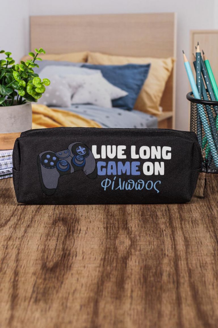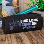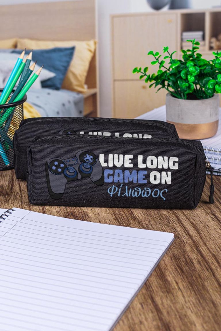 Σχολική Κασετίνα με Όνομα, σε Μαύρο Χρώμα & Σχέδιο Live Long