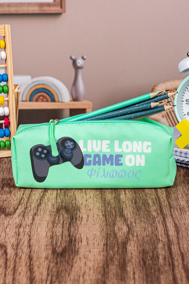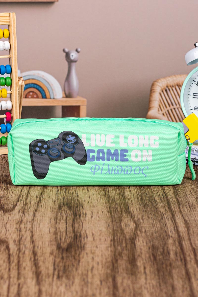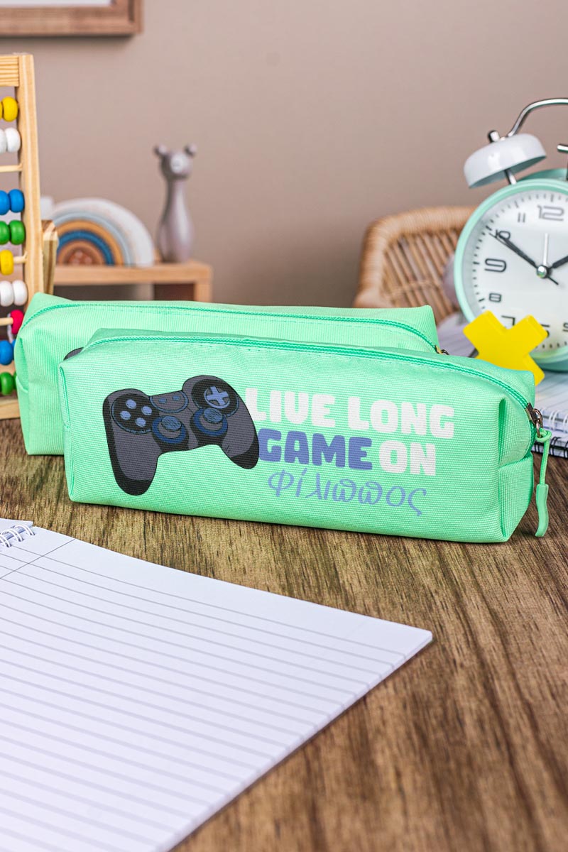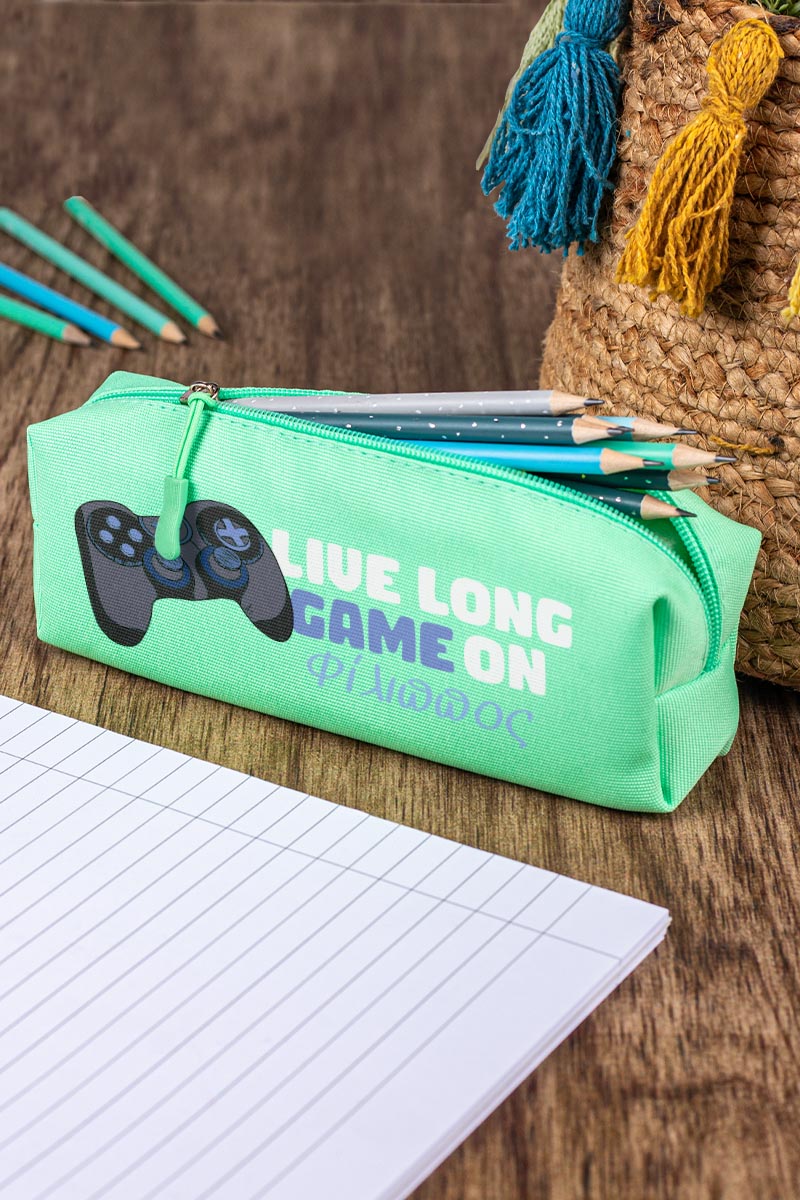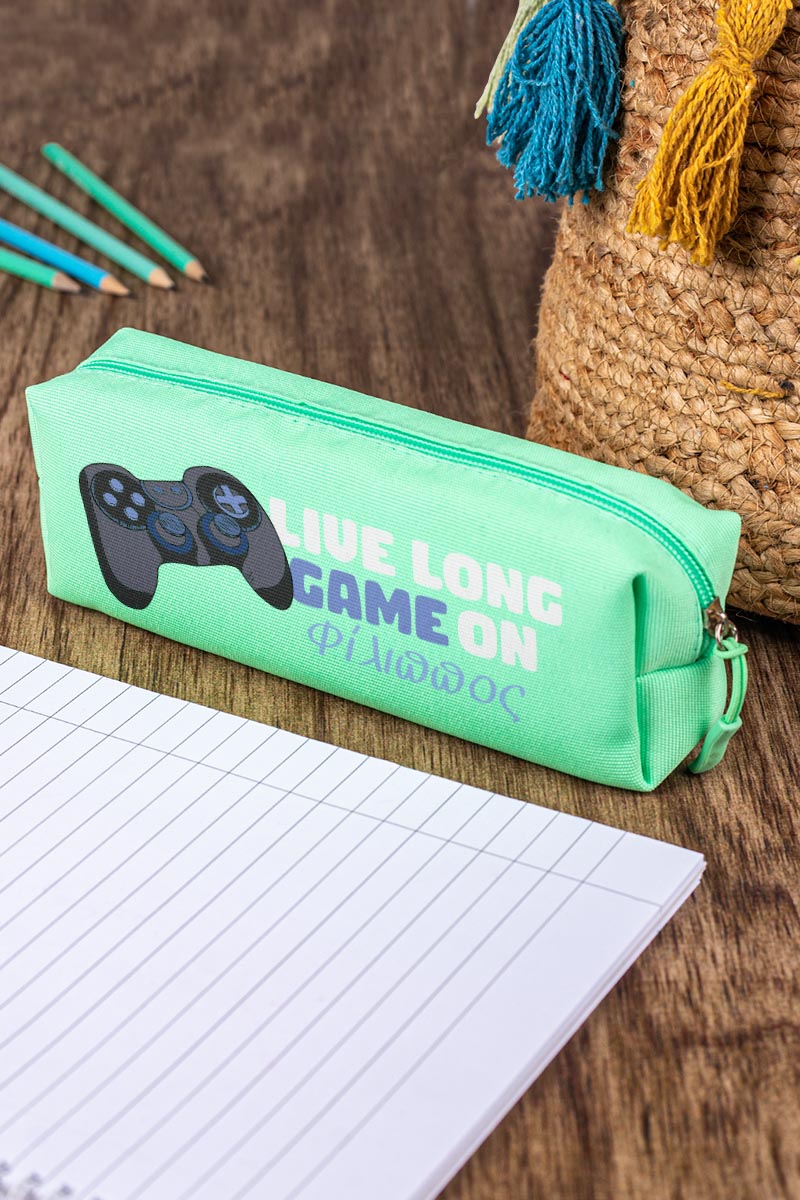 Σχολική Κασετίνα με Όνομα, σε Πετρόλ Χρώμα & Σχέδιο Live Long