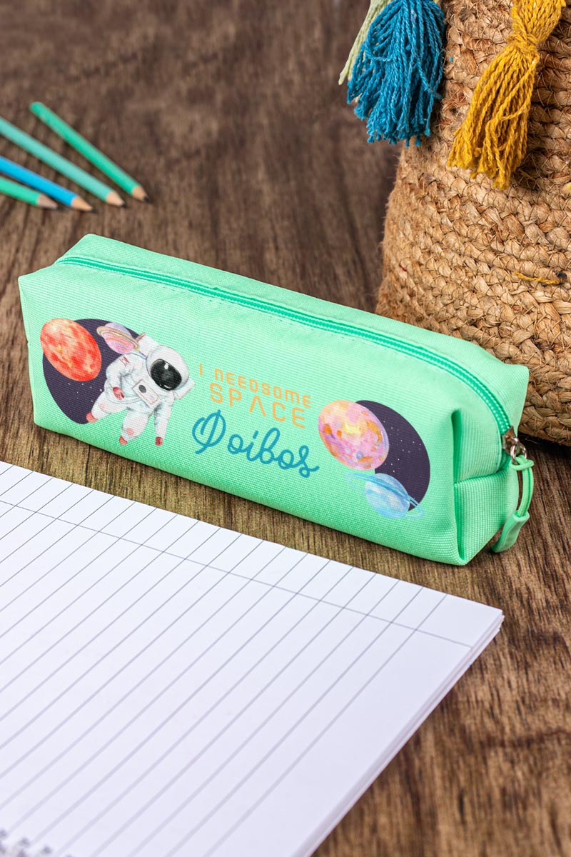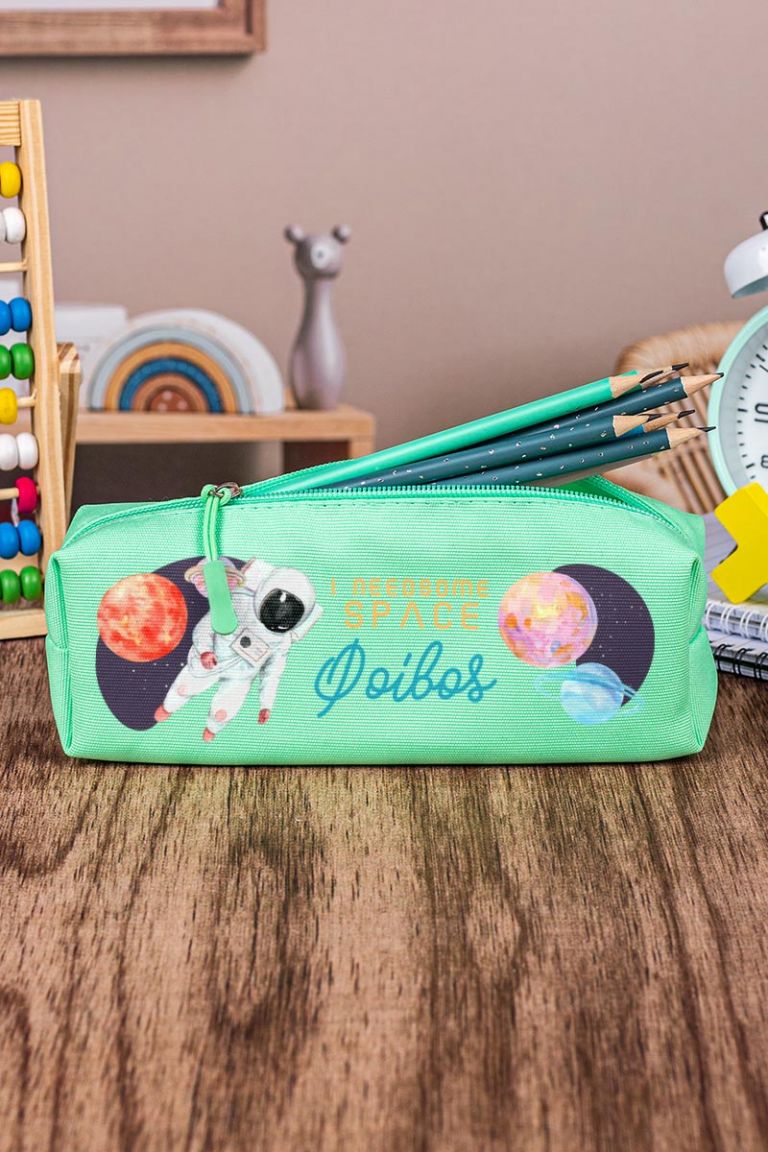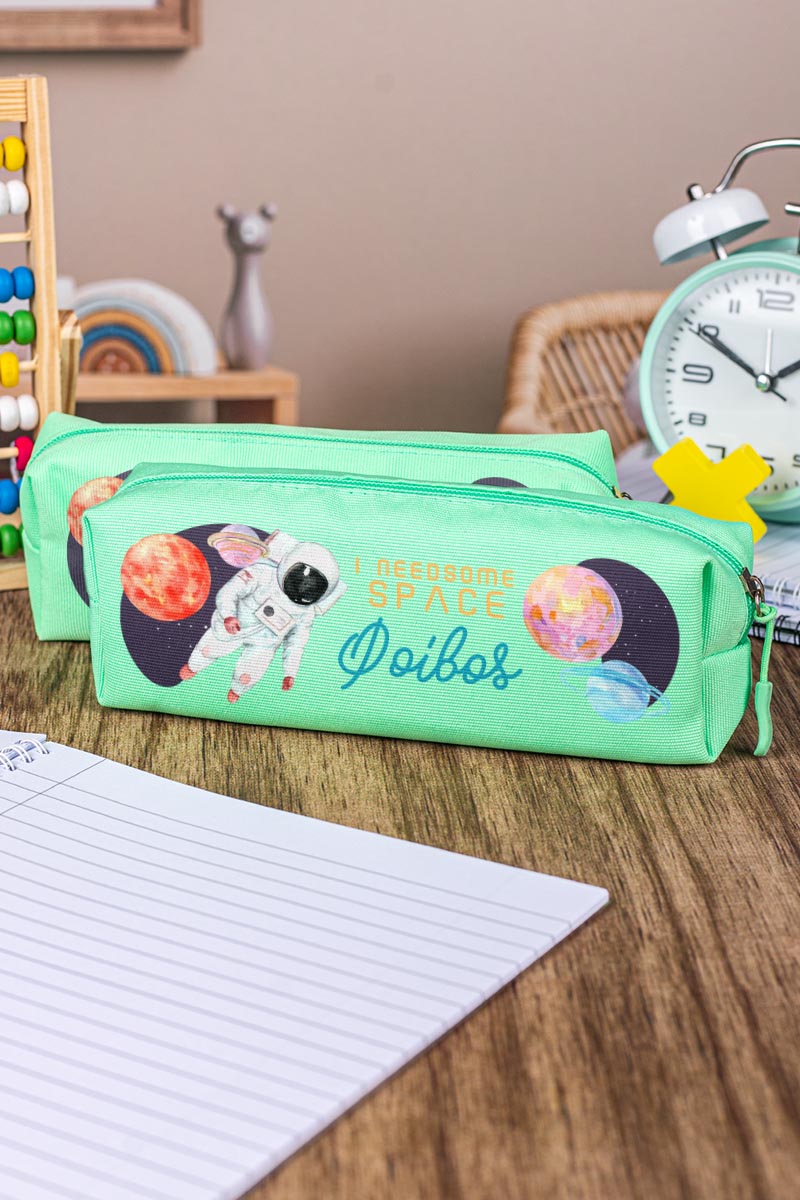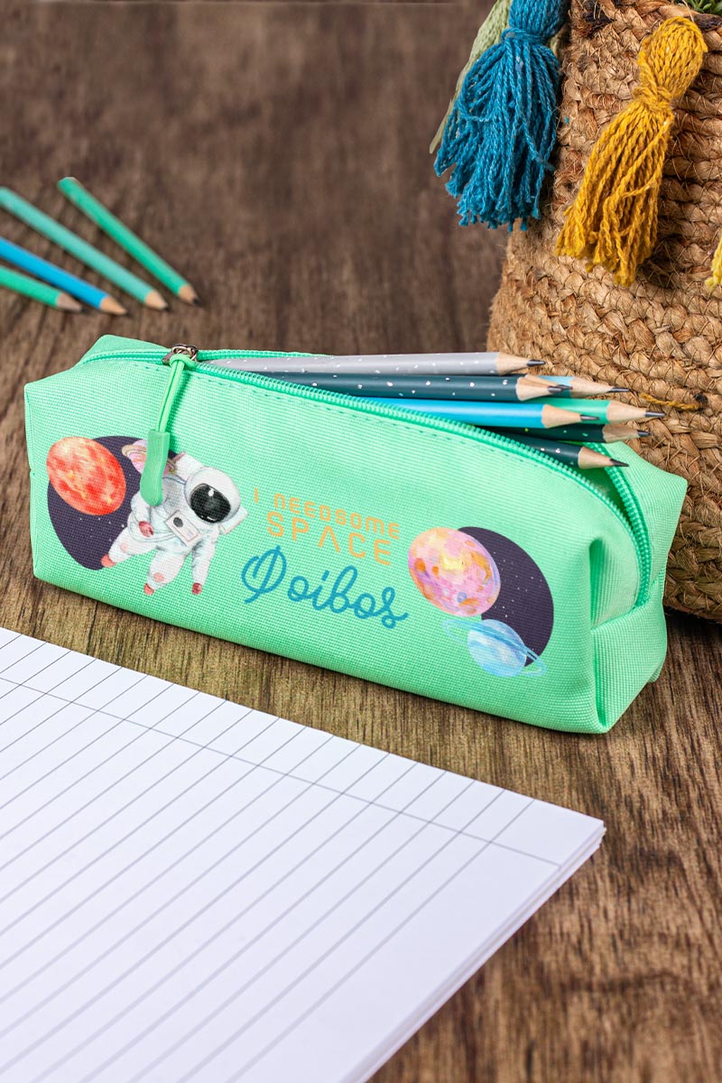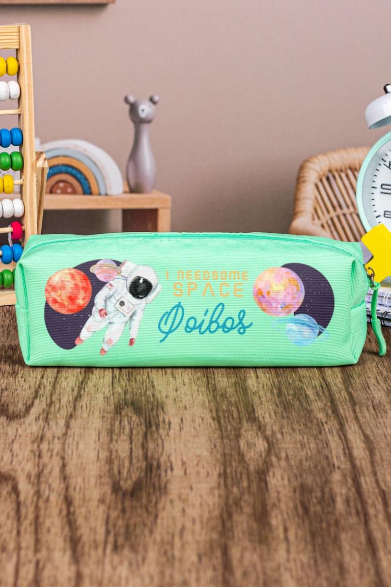Σχολική Κασετίνα με Όνομα, σε Πετρόλ Χρώμα & Σχέδιο Some Space