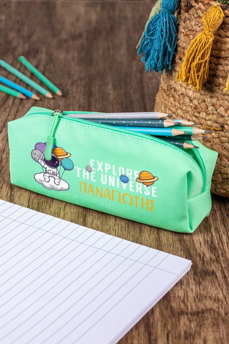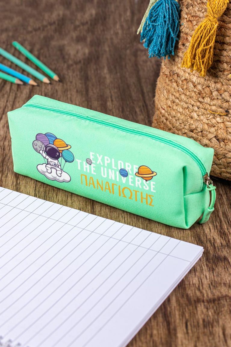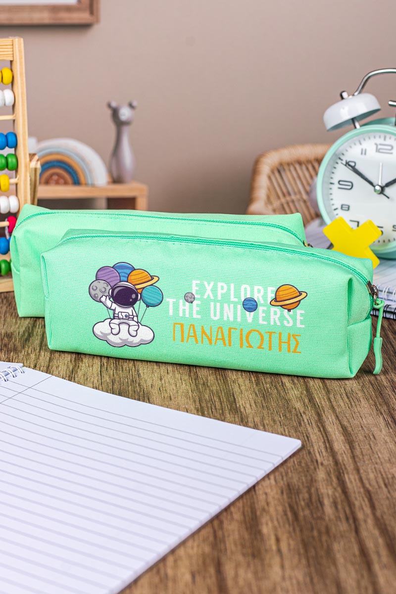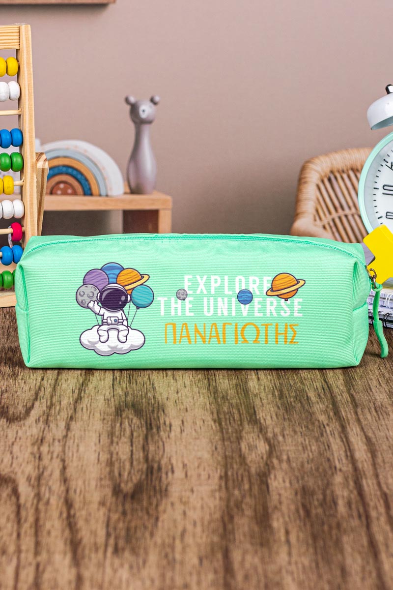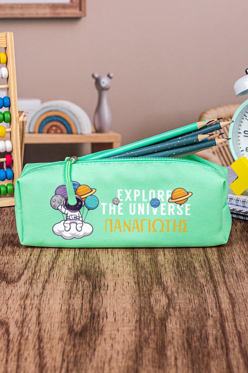 Σχολική Κασετίνα με Όνομα, σε Πετρόλ Χρώμα & Σχέδιο Universe Explorer