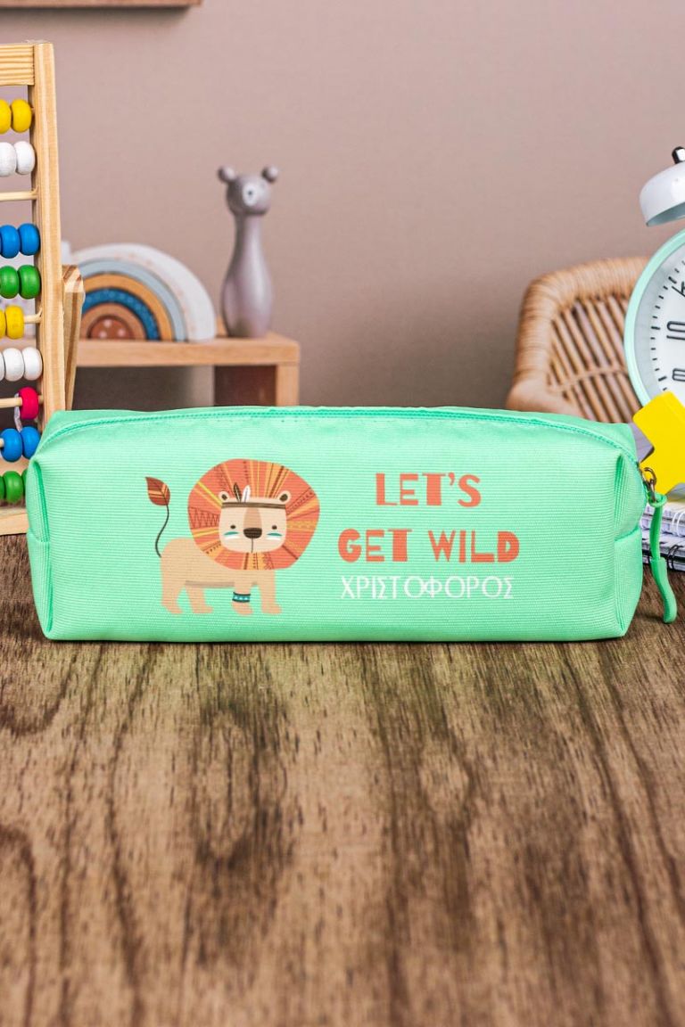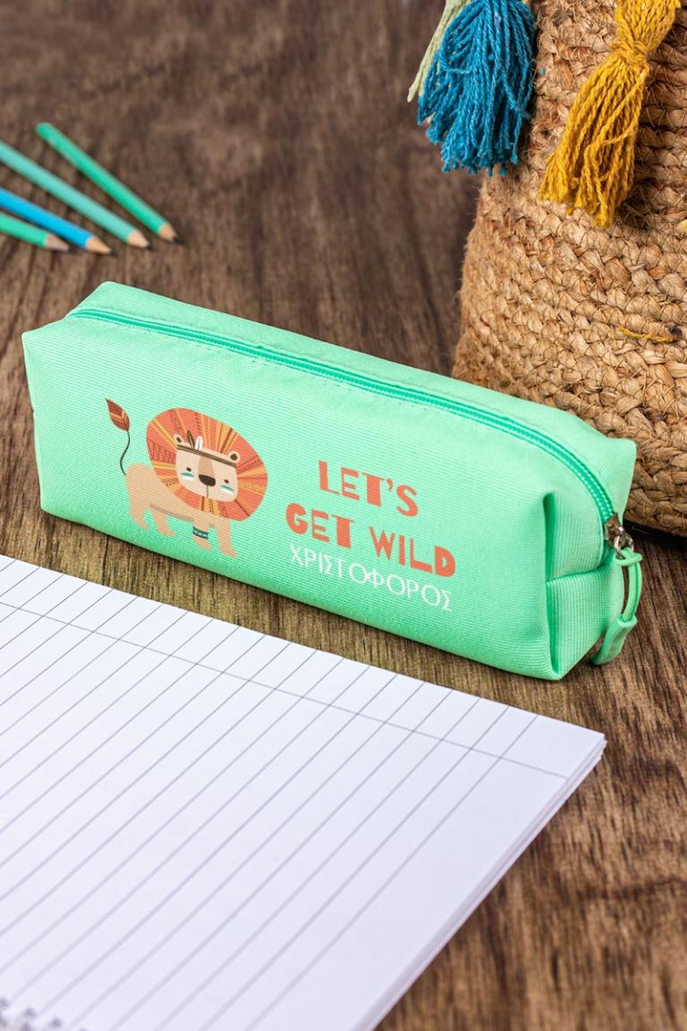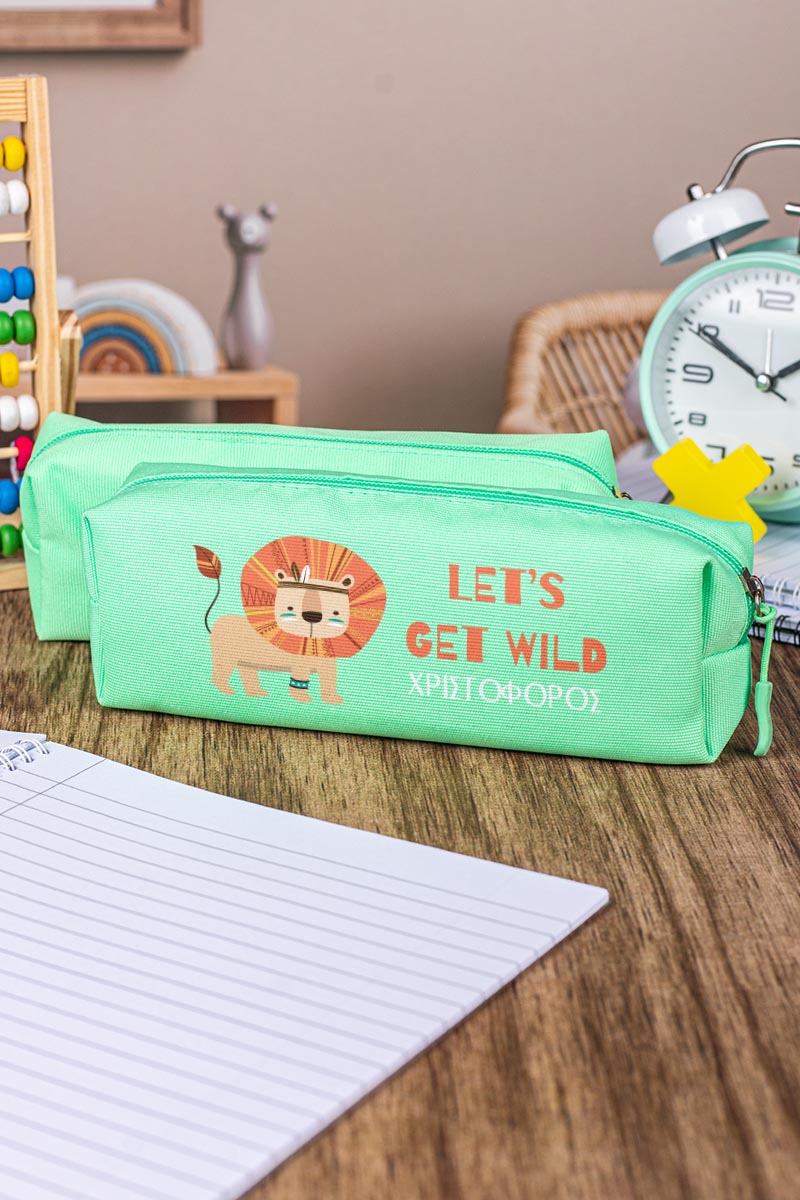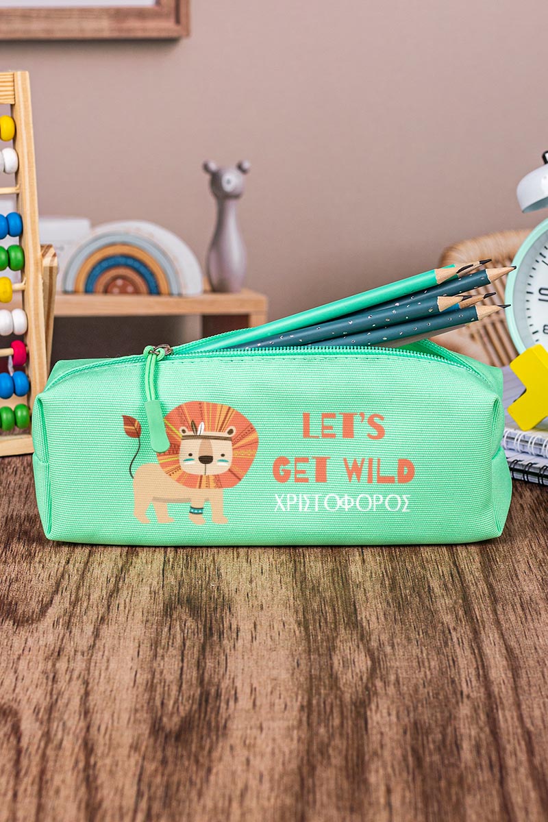 Σχολική Κασετίνα με Όνομα, σε Πετρόλ Χρώμα & Σχέδιο Wild Lion