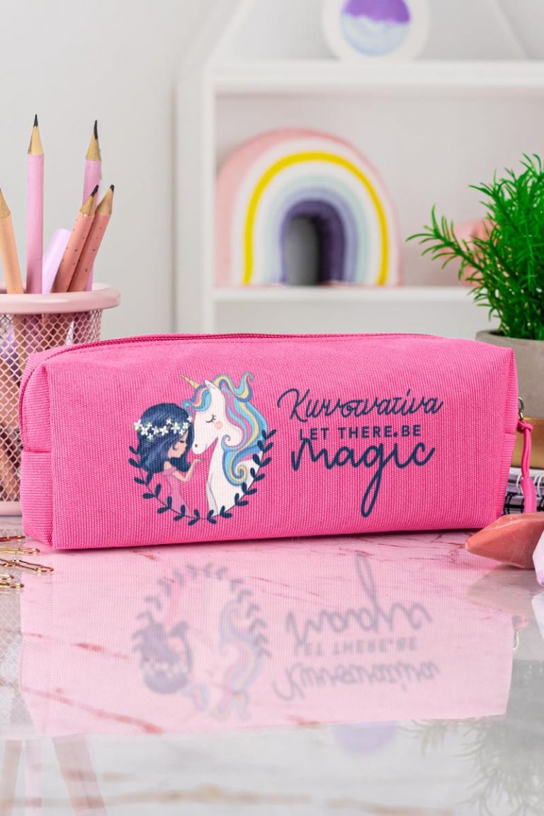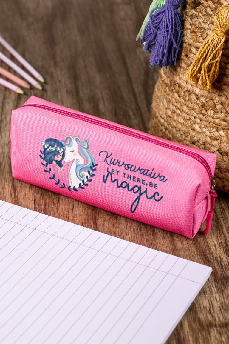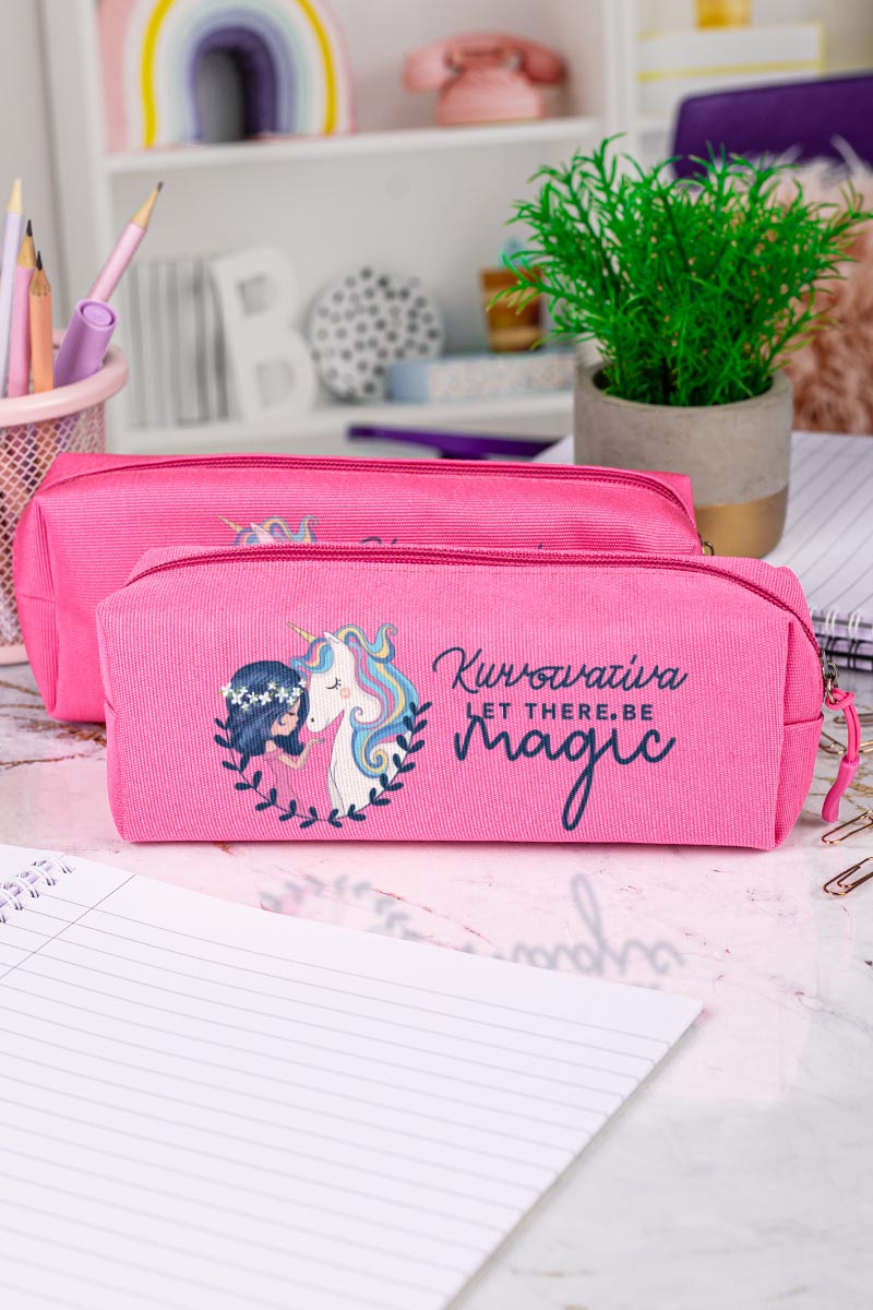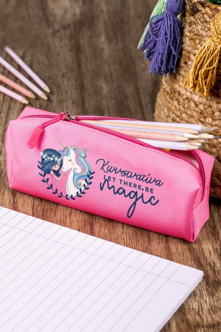 Σχολική Κασετίνα με Όνομα, σε Φούξια Χρώμα & Σχέδιο Be Magic