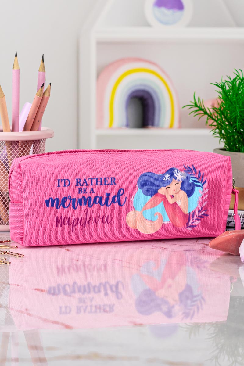 Σχολική Κασετίνα με Όνομα, σε Φούξια Χρώμα & Σχέδιο Cute