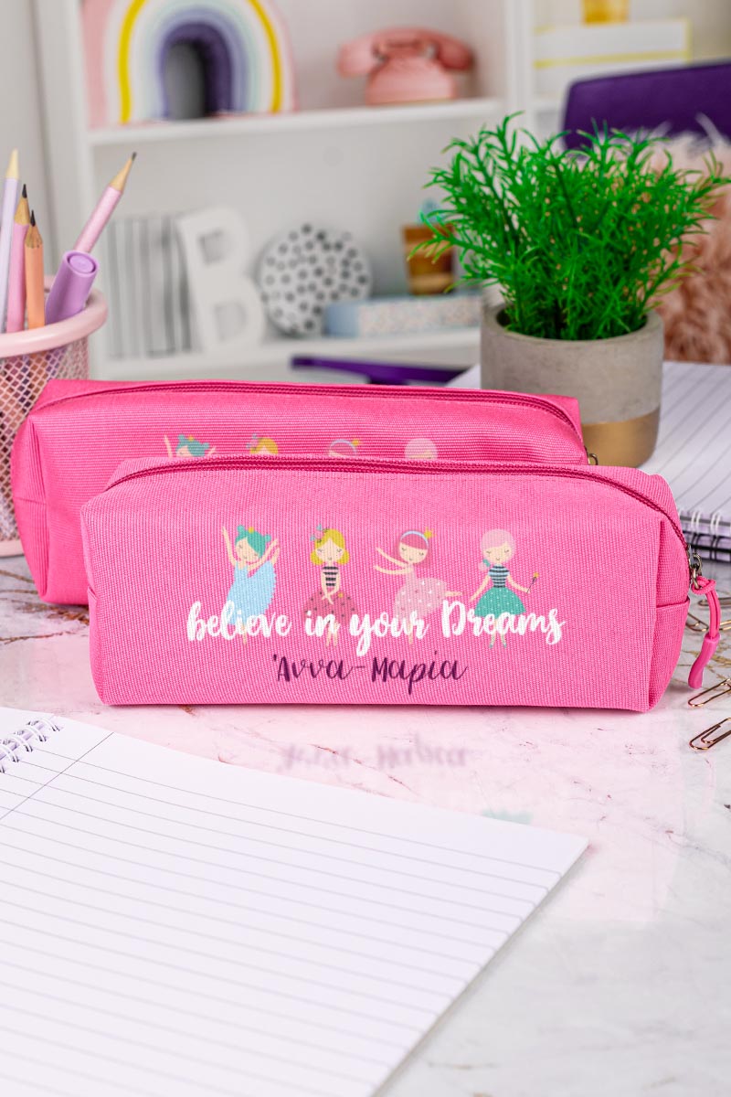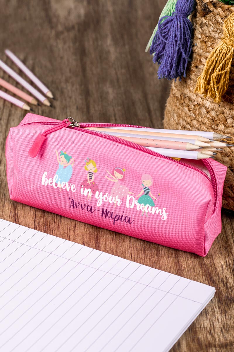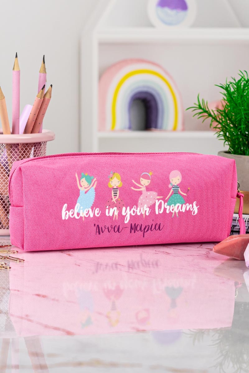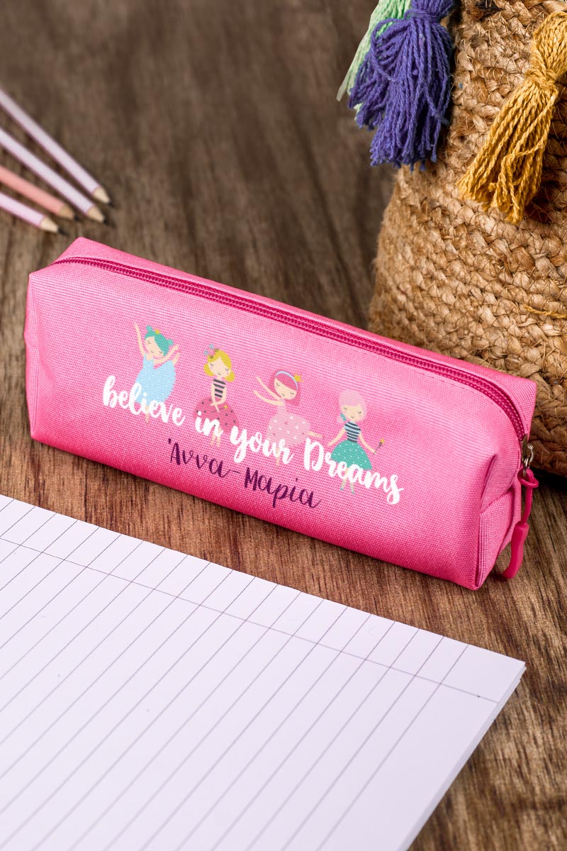 Σχολική Κασετίνα με Όνομα, σε Φούξια Χρώμα & Σχέδιο Dancers