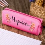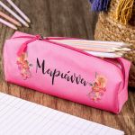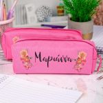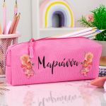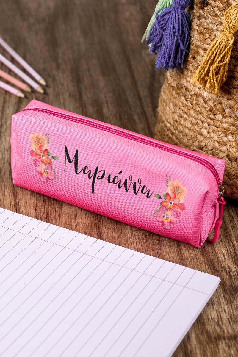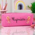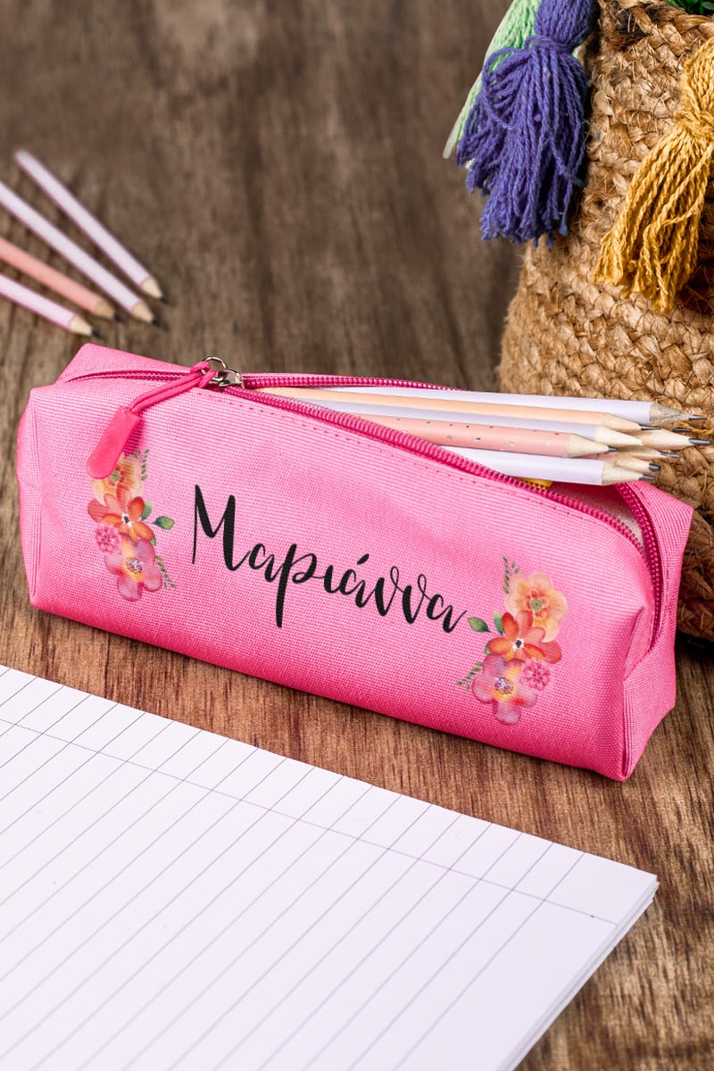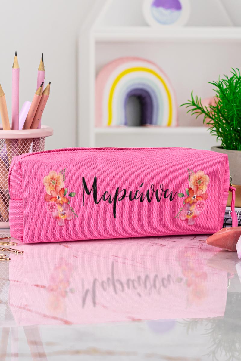 Σχολική Κασετίνα με Όνομα, σε Φούξια Χρώμα & Σχέδιο Floral
