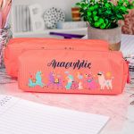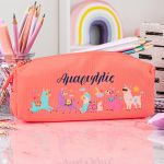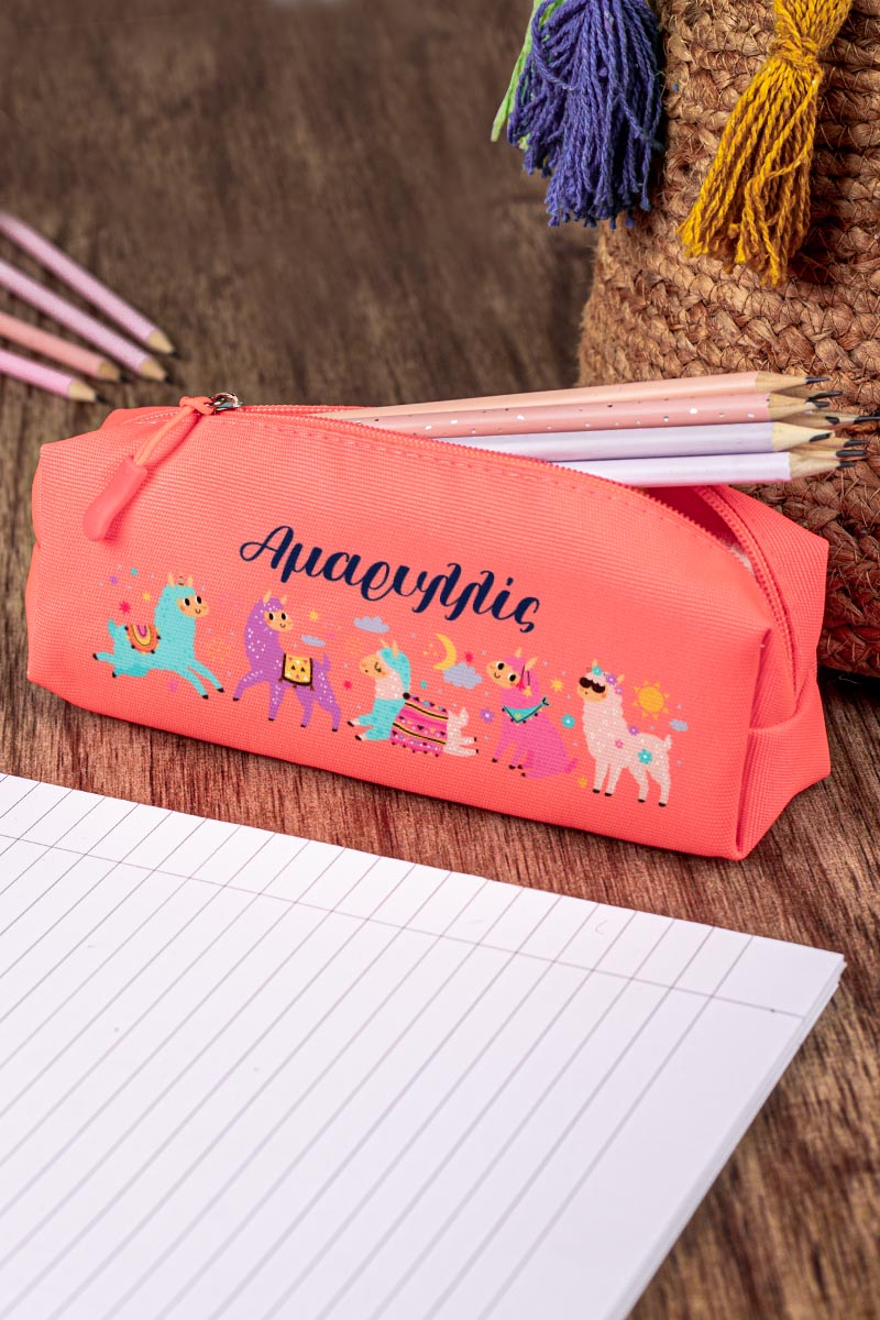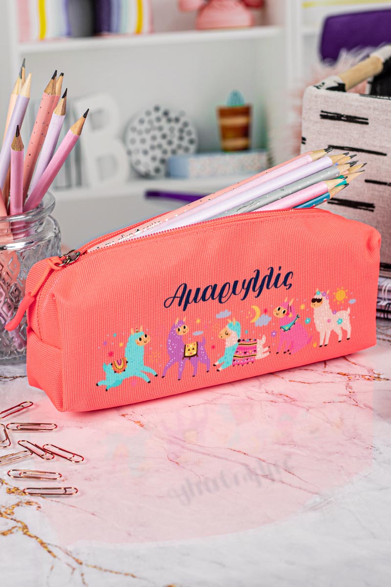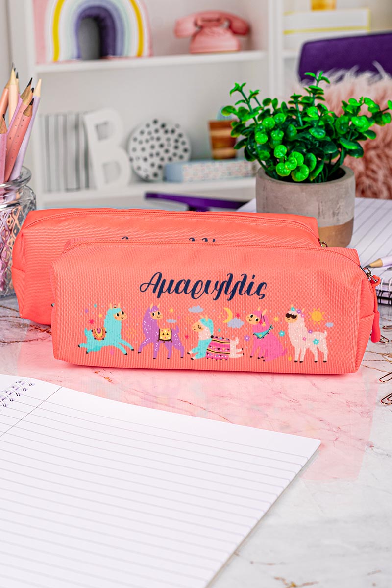 Σχολική Κασετίνα με Όνομα, σε Κοραλί Χρώμα & Σχέδιο Llamas