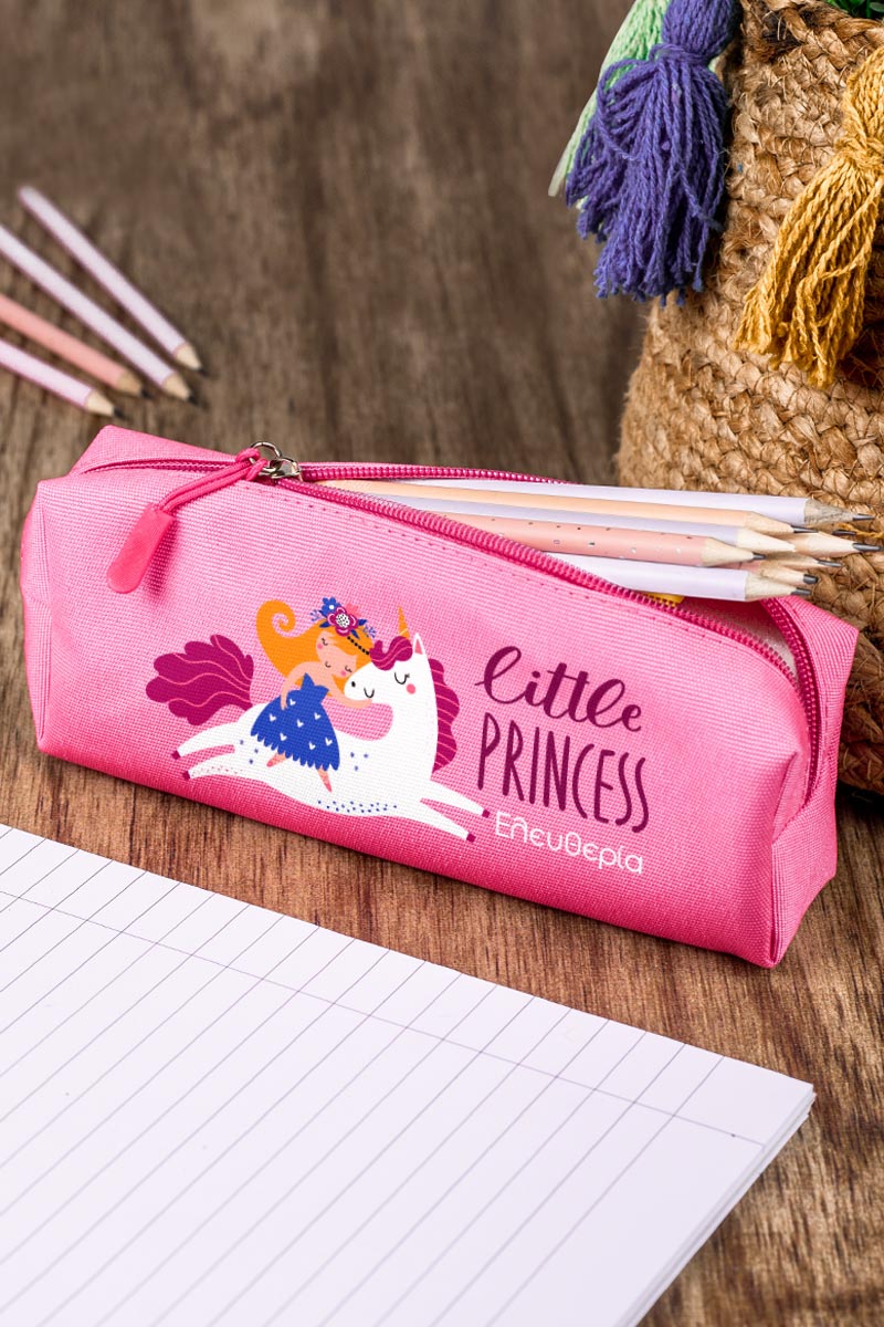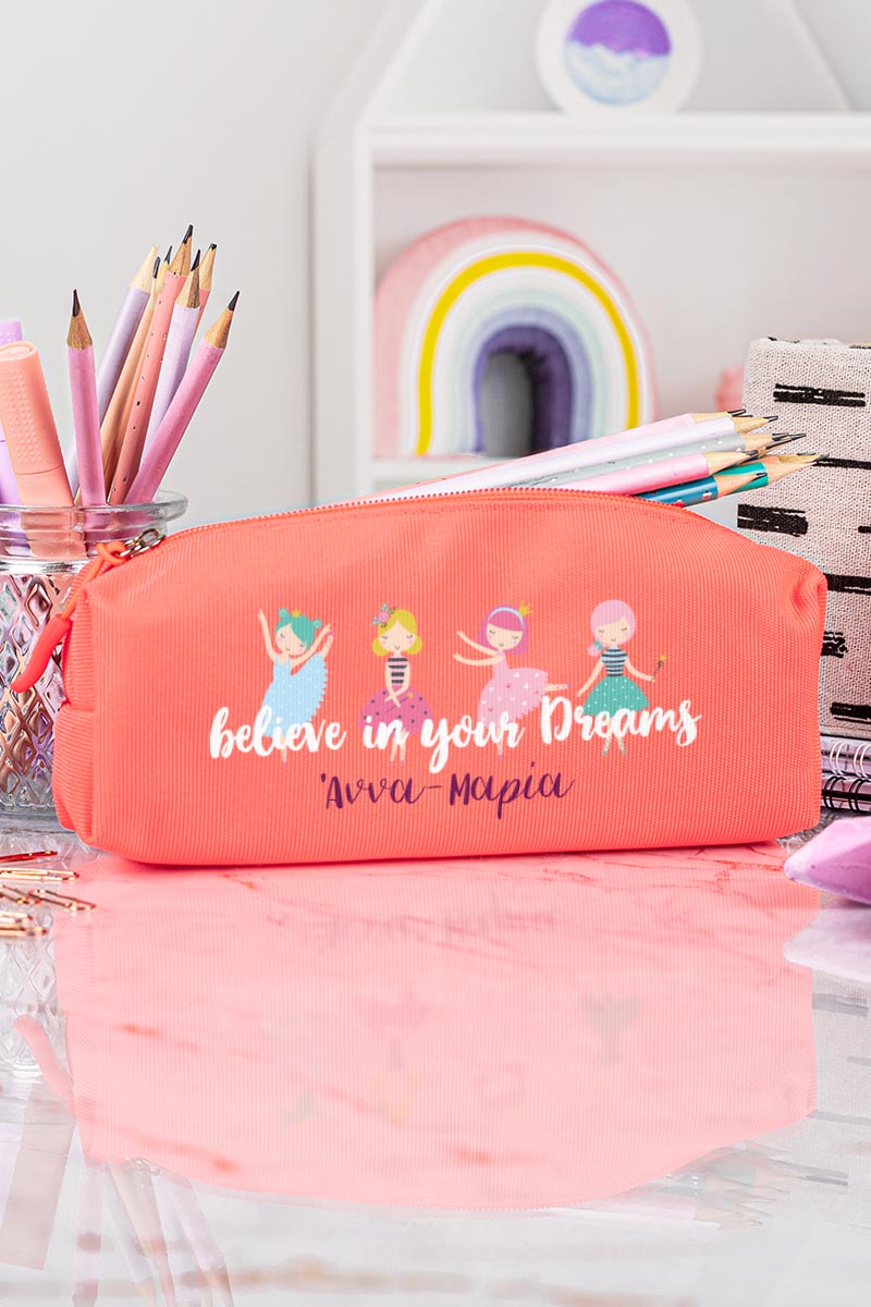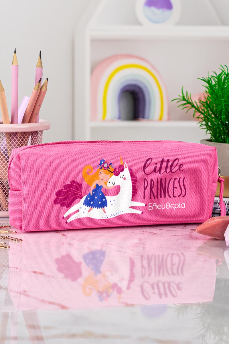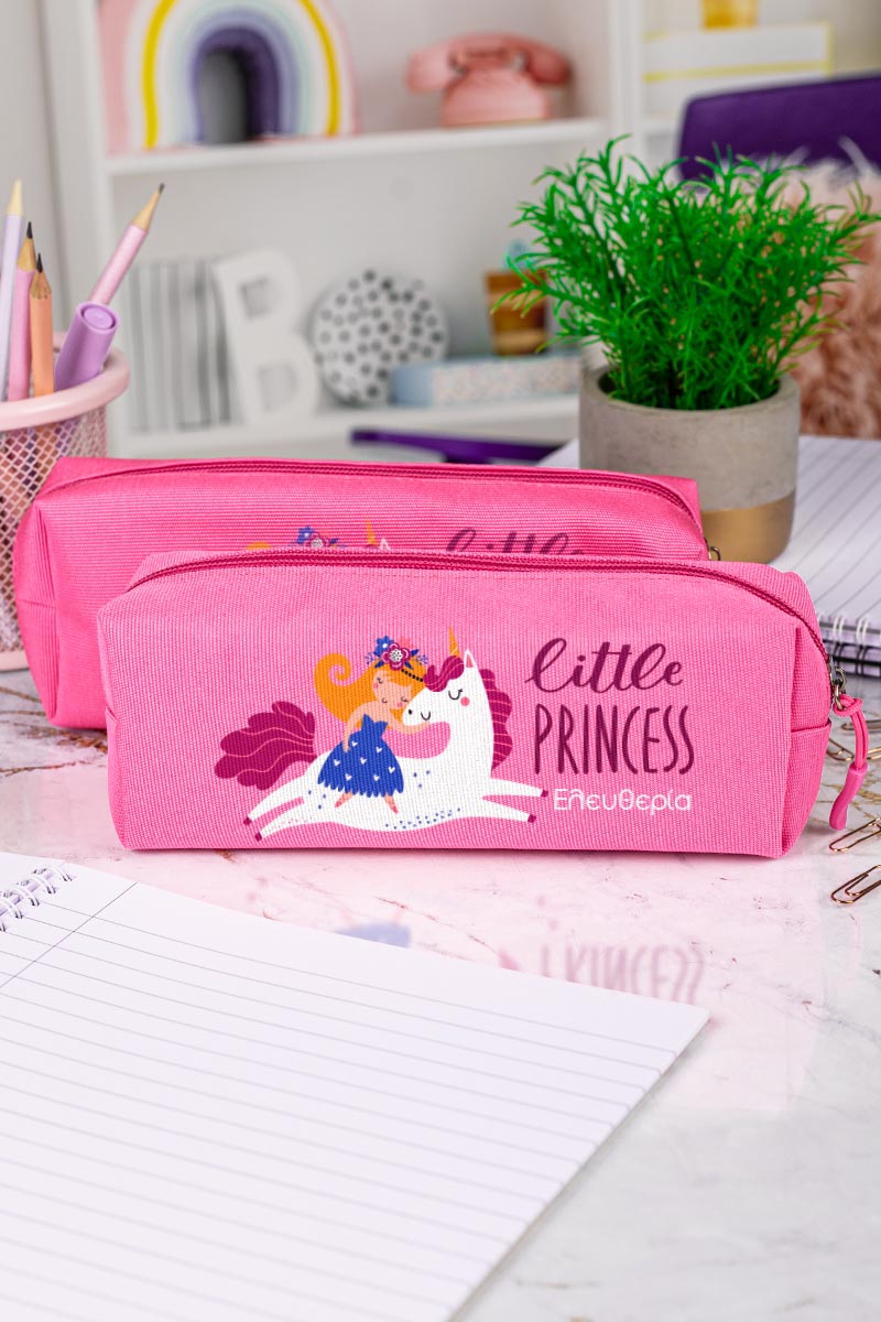 Σχολική Κασετίνα με Όνομα, σε Φούξια Χρώμα & Σχέδιο Princess