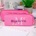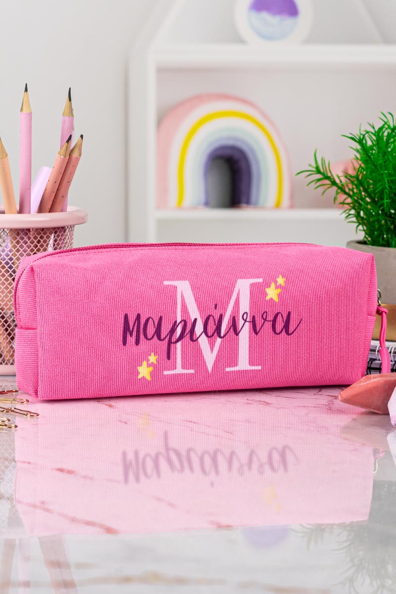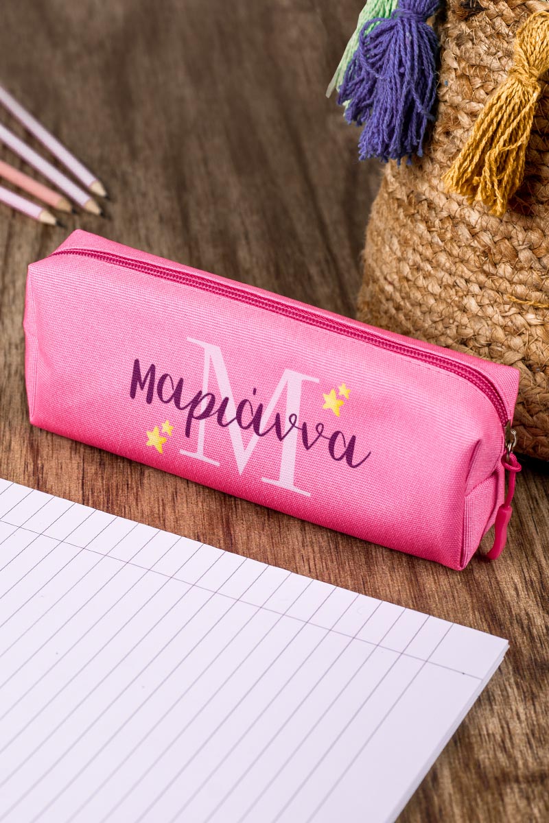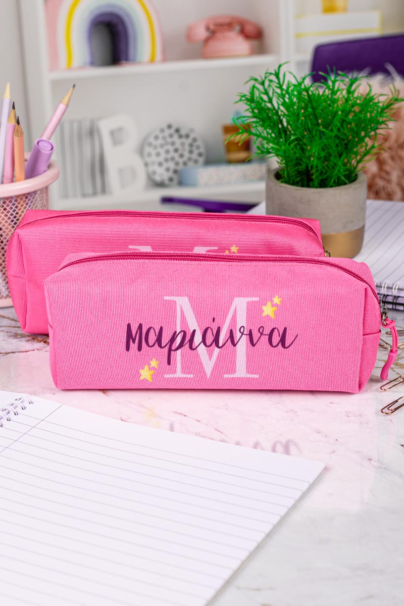 Σχολική Κασετίνα με Όνομα, σε Φούξια Χρώμα & Σχέδιο Stars