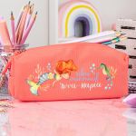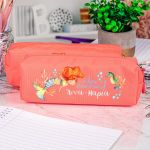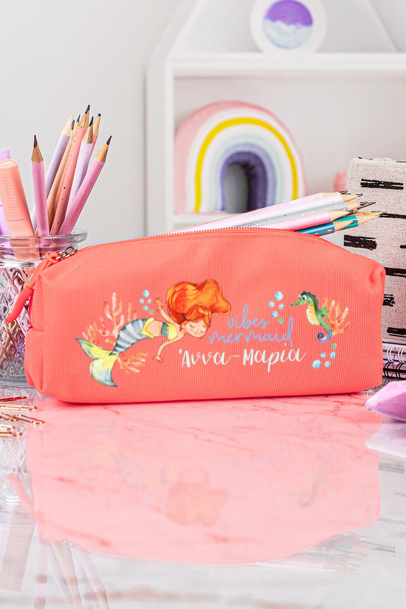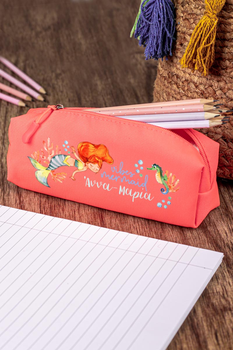 Σχολική Κασετίνα με Όνομα, σε Κοραλί Χρώμα & Σχέδιο Vibes