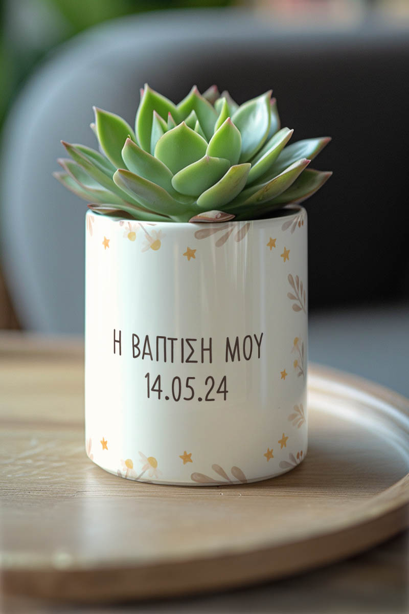 Κατασκευασμένα από υψηλής ποιότητας υλικά, τα γλαστράκια προσφέρουν ανθεκτικότητα και αξιοπιστία, εξασφαλίζοντας ότι θα απολαύσετε την ομορφιά τους για πολλά χρόνια. Είτε χρησιμοποιηθούν μόνα τους είτε σε συνδυασμό με άλλες διακοσμητικές προτάσεις, τα προσωποποιημένα γλαστράκια αναβαθμίζουν άμεσα τον χώρο σας με στιλ και προσωπικότητα.
