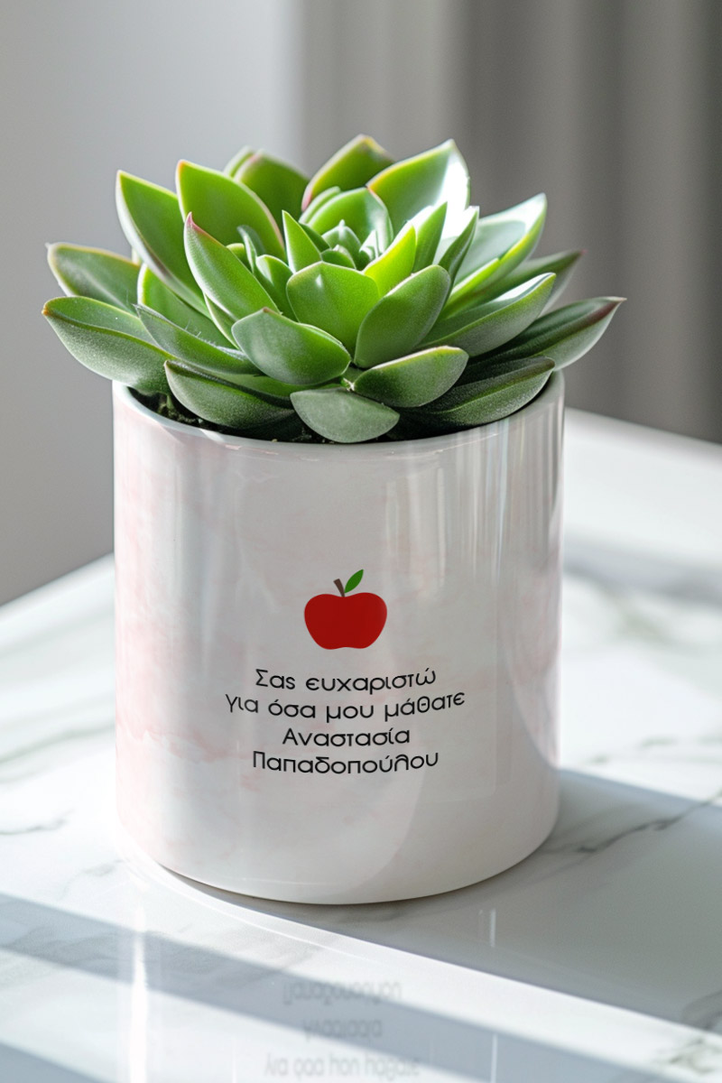 Κατασκευασμένα από υψηλής ποιότητας υλικά, τα γλαστράκια προσφέρουν ανθεκτικότητα και αξιοπιστία, εξασφαλίζοντας ότι θα απολαύσετε την ομορφιά τους για πολλά χρόνια. Είτε χρησιμοποιηθούν μόνα τους είτε σε συνδυασμό με άλλες διακοσμητικές προτάσεις, τα προσωποποιημένα γλαστράκια αναβαθμίζουν άμεσα τον χώρο σας με στιλ και προσωπικότητα.