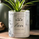 Κατασκευασμένα από υψηλής ποιότητας υλικά, τα γλαστράκια προσφέρουν ανθεκτικότητα και αξιοπιστία, εξασφαλίζοντας ότι θα απολαύσετε την ομορφιά τους για πολλά χρόνια. Είτε χρησιμοποιηθούν μόνα τους είτε σε συνδυασμό με άλλες διακοσμητικές προτάσεις, τα προσωποποιημένα γλαστράκια αναβαθμίζουν άμεσα τον χώρο σας με στιλ και προσωπικότητα.