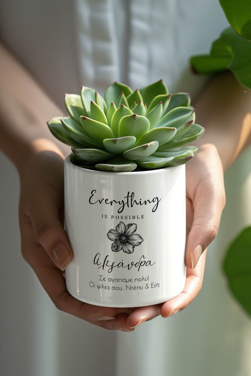 Κατασκευασμένα από υψηλής ποιότητας υλικά, τα γλαστράκια προσφέρουν ανθεκτικότητα και αξιοπιστία, εξασφαλίζοντας ότι θα απολαύσετε την ομορφιά τους για πολλά χρόνια. Είτε χρησιμοποιηθούν μόνα τους είτε σε συνδυασμό με άλλες διακοσμητικές προτάσεις, τα προσωποποιημένα γλαστράκια αναβαθμίζουν άμεσα τον χώρο σας με στιλ και προσωπικότητα.