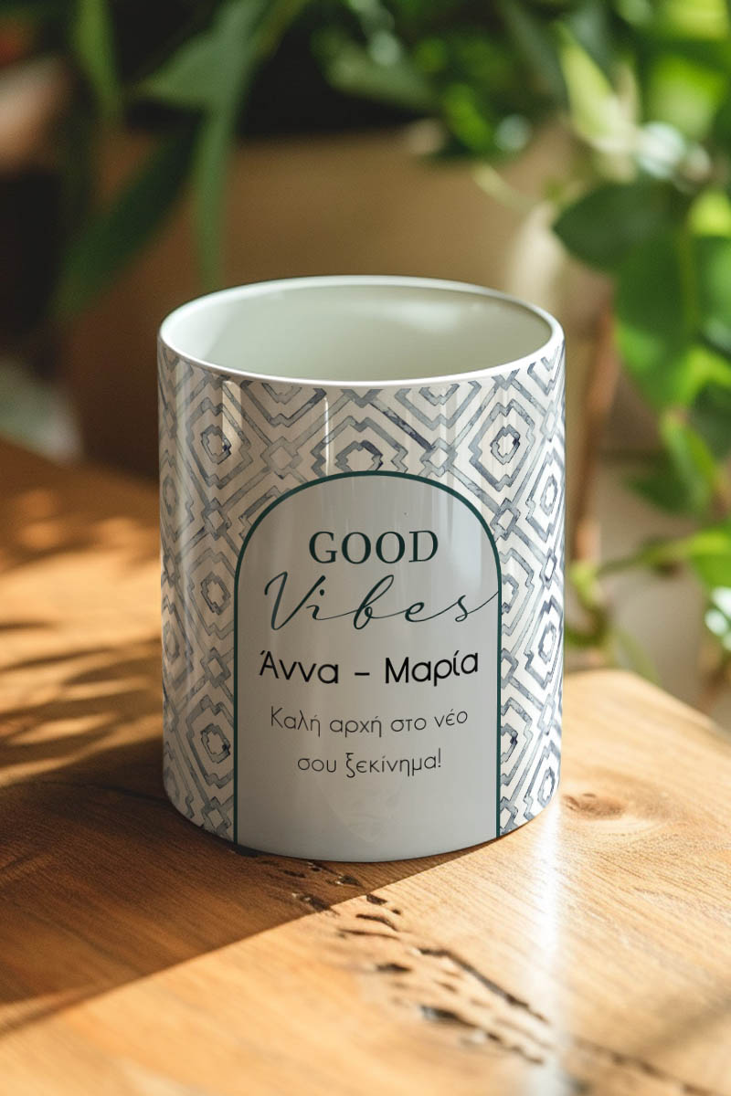 Κασπώ Προσωποποιημένο με Σχέδιο Good Vibes