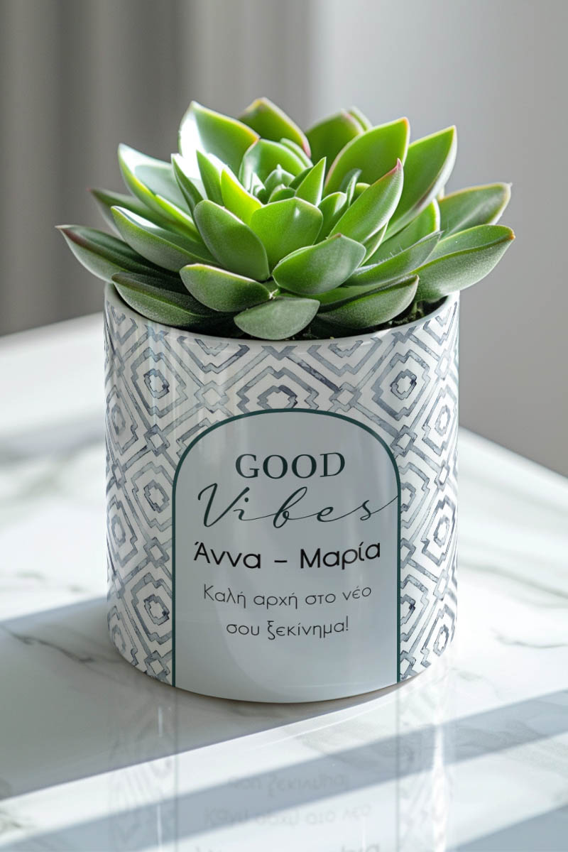 Κατασκευασμένα από υψηλής ποιότητας υλικά, τα γλαστράκια προσφέρουν ανθεκτικότητα και αξιοπιστία, εξασφαλίζοντας ότι θα απολαύσετε την ομορφιά τους για πολλά χρόνια. Είτε χρησιμοποιηθούν μόνα τους είτε σε συνδυασμό με άλλες διακοσμητικές προτάσεις, τα προσωποποιημένα γλαστράκια αναβαθμίζουν άμεσα τον χώρο σας με στιλ και προσωπικότητα.