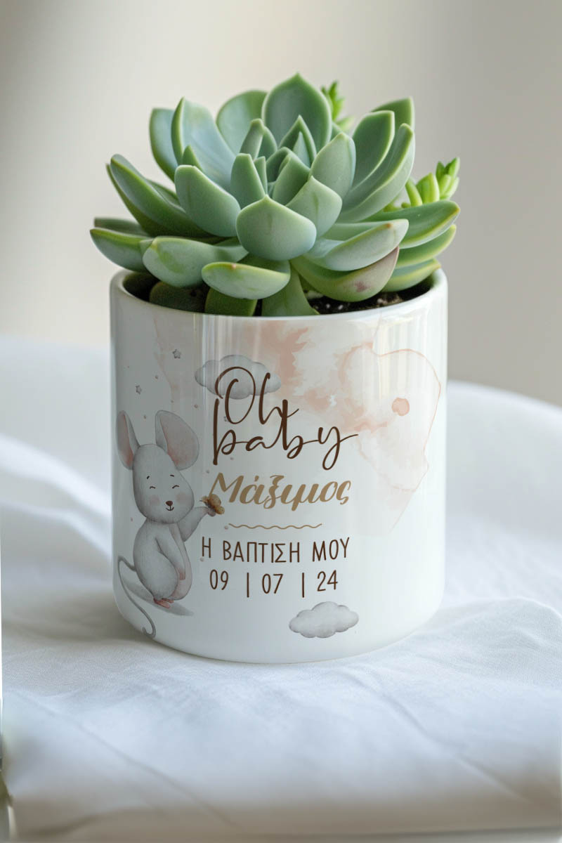 Κατασκευασμένα από υψηλής ποιότητας υλικά, τα γλαστράκια προσφέρουν ανθεκτικότητα και αξιοπιστία, εξασφαλίζοντας ότι θα απολαύσετε την ομορφιά τους για πολλά χρόνια. Είτε χρησιμοποιηθούν μόνα τους είτε σε συνδυασμό με άλλες διακοσμητικές προτάσεις, τα προσωποποιημένα γλαστράκια αναβαθμίζουν άμεσα τον χώρο σας με στιλ και προσωπικότητα.