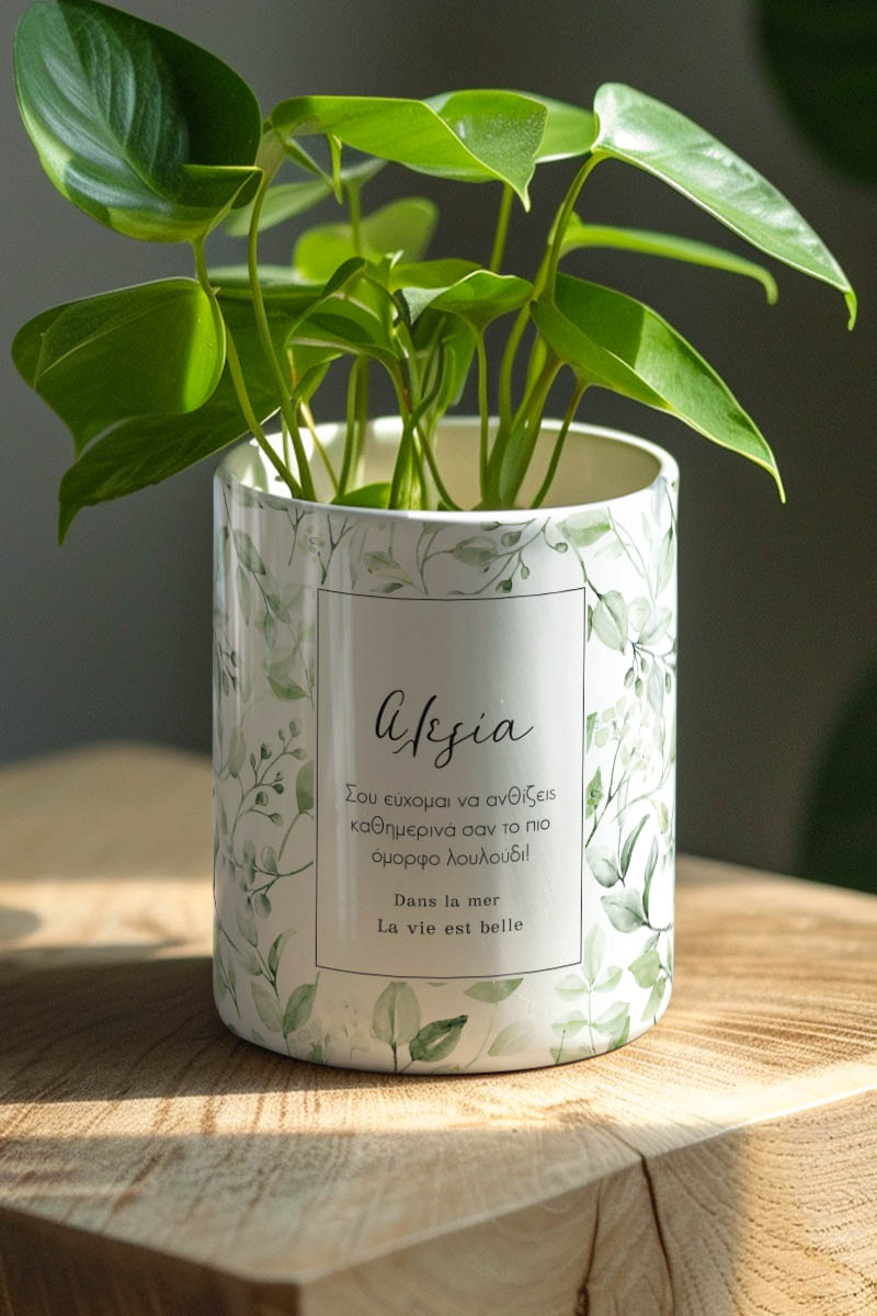Κατασκευασμένα από υψηλής ποιότητας υλικά, τα γλαστράκια προσφέρουν ανθεκτικότητα και αξιοπιστία, εξασφαλίζοντας ότι θα απολαύσετε την ομορφιά τους για πολλά χρόνια. Είτε χρησιμοποιηθούν μόνα τους είτε σε συνδυασμό με άλλες διακοσμητικές προτάσεις, τα προσωποποιημένα γλαστράκια αναβαθμίζουν άμεσα τον χώρο σας με στιλ και προσωπικότητα.