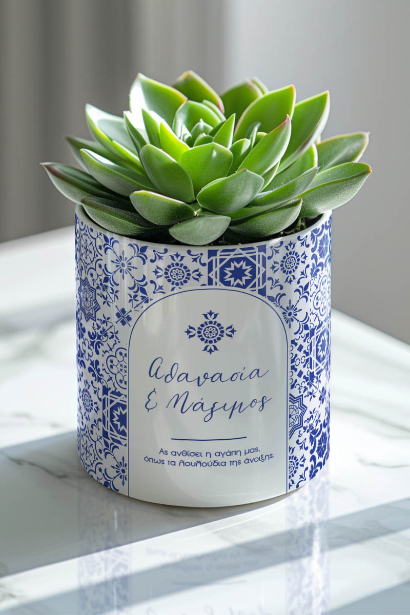 Όταν αναζητάτε το τέλειο δώρο για μια ξεχωριστή περίσταση ή απλά θέλετε να διακοσμήσετε τον χώρο σας με μοναδικά στοιχεία, τα προσωποποιημένα κασπώ και διακοσμητικά γλαστράκια είναι η ιδανική επιλογή. Με διάφορα σχέδια, χρώματα και υλικά, μπορείτε να επιλέξετε αυτό που ταιριάζει καλύτερα στο στυλ και τις προτιμήσεις σας. Είναι ένας τρόπος να μεταφέρετε ένα μήνυμα αγάπης, εκτιμήσεως ή ευγνωμοσύνης με έναν μοναδικό και αξέχαστο τρόπο.