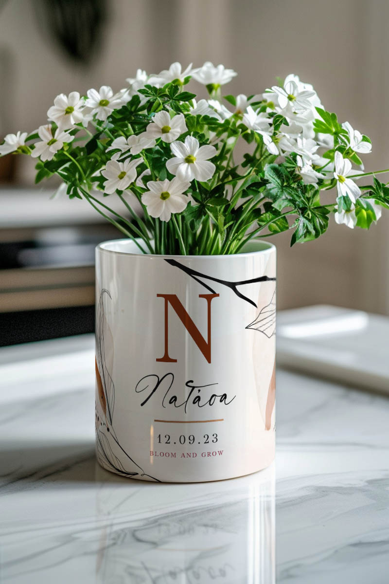 Κατασκευασμένα από υψηλής ποιότητας υλικά, τα γλαστράκια προσφέρουν ανθεκτικότητα και αξιοπιστία, εξασφαλίζοντας ότι θα απολαύσετε την ομορφιά τους για πολλά χρόνια. Είτε χρησιμοποιηθούν μόνα τους είτε σε συνδυασμό με άλλες διακοσμητικές προτάσεις, τα προσωποποιημένα γλαστράκια αναβαθμίζουν άμεσα τον χώρο σας με στιλ και προσωπικότητα.