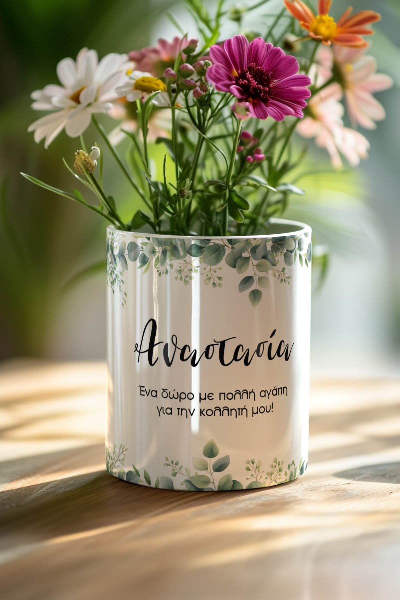 Κατασκευασμένα από υψηλής ποιότητας υλικά, τα γλαστράκια προσφέρουν ανθεκτικότητα και αξιοπιστία, εξασφαλίζοντας ότι θα απολαύσετε την ομορφιά τους για πολλά χρόνια. Είτε χρησιμοποιηθούν μόνα τους είτε σε συνδυασμό με άλλες διακοσμητικές προτάσεις, τα προσωποποιημένα γλαστράκια αναβαθμίζουν άμεσα τον χώρο σας με στιλ και προσωπικότητα.