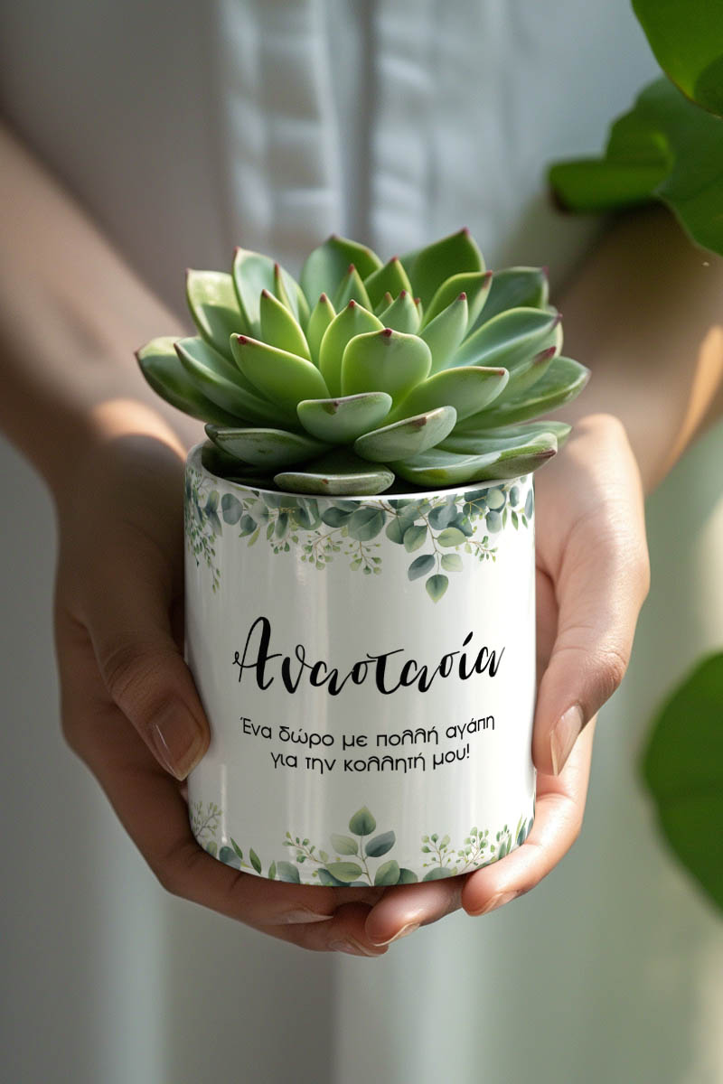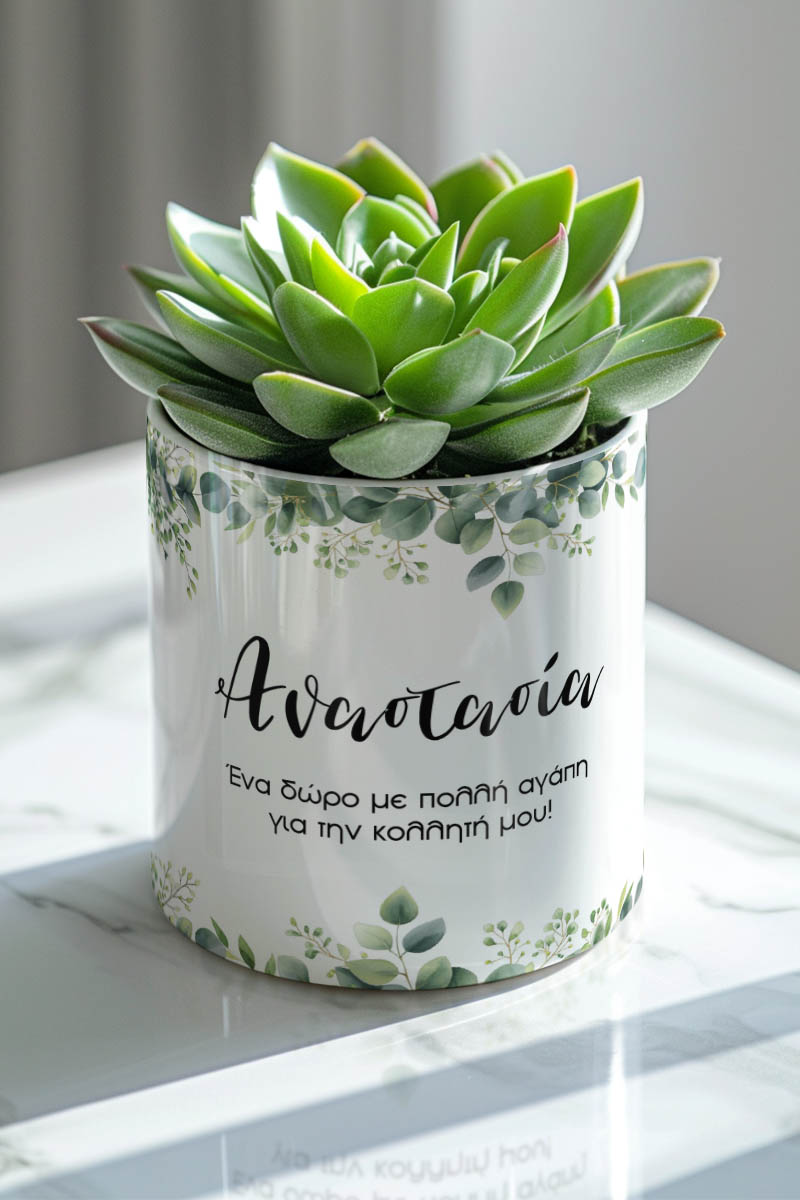 Όταν αναζητάτε το τέλειο δώρο για μια ξεχωριστή περίσταση ή απλά θέλετε να διακοσμήσετε τον χώρο σας με μοναδικά στοιχεία, τα προσωποποιημένα κασπώ και διακοσμητικά γλαστράκια είναι η ιδανική επιλογή. Με διάφορα σχέδια, χρώματα και υλικά, μπορείτε να επιλέξετε αυτό που ταιριάζει καλύτερα στο στυλ και τις προτιμήσεις σας. Είναι ένας τρόπος να μεταφέρετε ένα μήνυμα αγάπης, εκτιμήσεως ή ευγνωμοσύνης με έναν μοναδικό και αξέχαστο τρόπο.