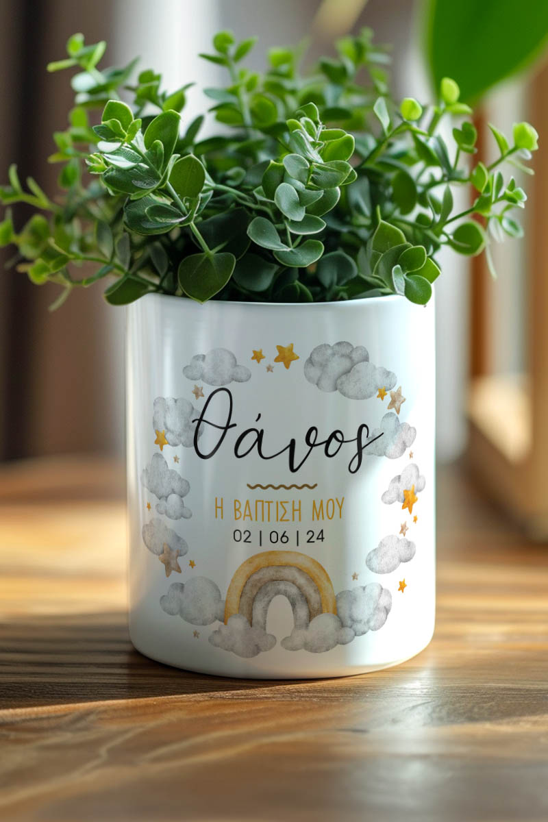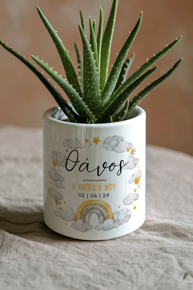 Κατασκευασμένα από υψηλής ποιότητας υλικά, τα γλαστράκια προσφέρουν ανθεκτικότητα και αξιοπιστία, εξασφαλίζοντας ότι θα απολαύσετε την ομορφιά τους για πολλά χρόνια. Είτε χρησιμοποιηθούν μόνα τους είτε σε συνδυασμό με άλλες διακοσμητικές προτάσεις, τα προσωποποιημένα γλαστράκια αναβαθμίζουν άμεσα τον χώρο σας με στιλ και προσωπικότητα.