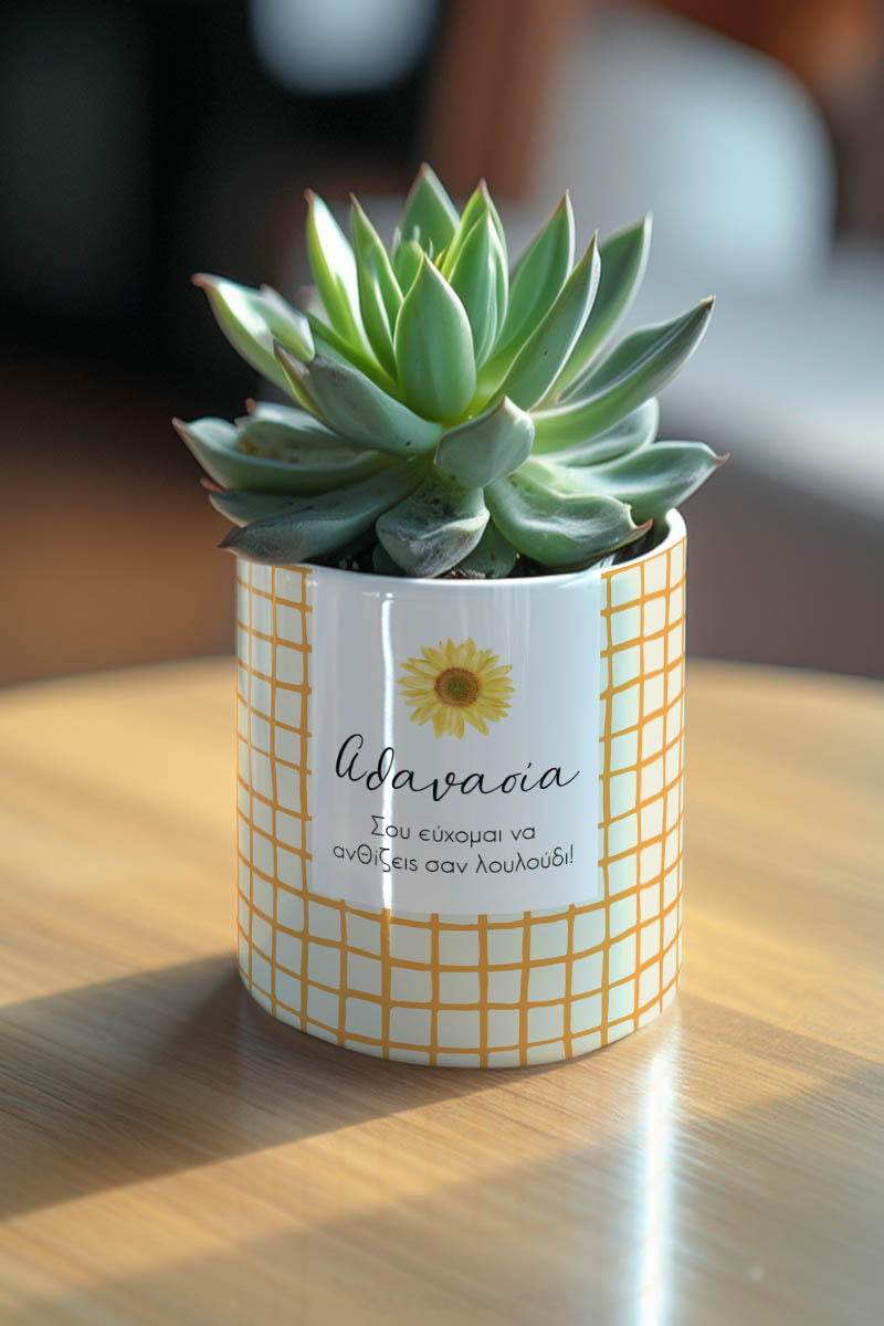 Κατασκευασμένα από υψηλής ποιότητας υλικά, τα γλαστράκια προσφέρουν ανθεκτικότητα και αξιοπιστία, εξασφαλίζοντας ότι θα απολαύσετε την ομορφιά τους για πολλά χρόνια. Είτε χρησιμοποιηθούν μόνα τους είτε σε συνδυασμό με άλλες διακοσμητικές προτάσεις, τα προσωποποιημένα γλαστράκια αναβαθμίζουν άμεσα τον χώρο σας με στιλ και προσωπικότητα.