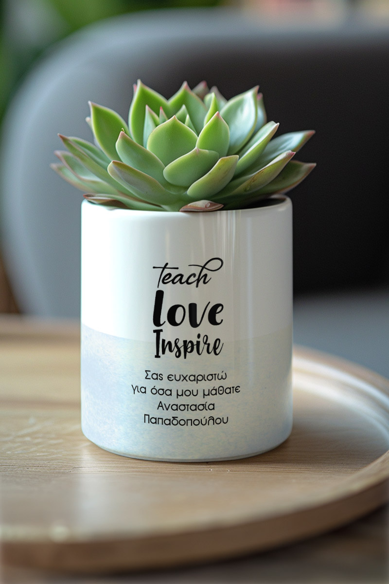 Κατασκευασμένα από υψηλής ποιότητας υλικά, τα γλαστράκια προσφέρουν ανθεκτικότητα και αξιοπιστία, εξασφαλίζοντας ότι θα απολαύσετε την ομορφιά τους για πολλά χρόνια. Είτε χρησιμοποιηθούν μόνα τους είτε σε συνδυασμό με άλλες διακοσμητικές προτάσεις, τα προσωποποιημένα γλαστράκια αναβαθμίζουν άμεσα τον χώρο σας με στιλ και προσωπικότητα.