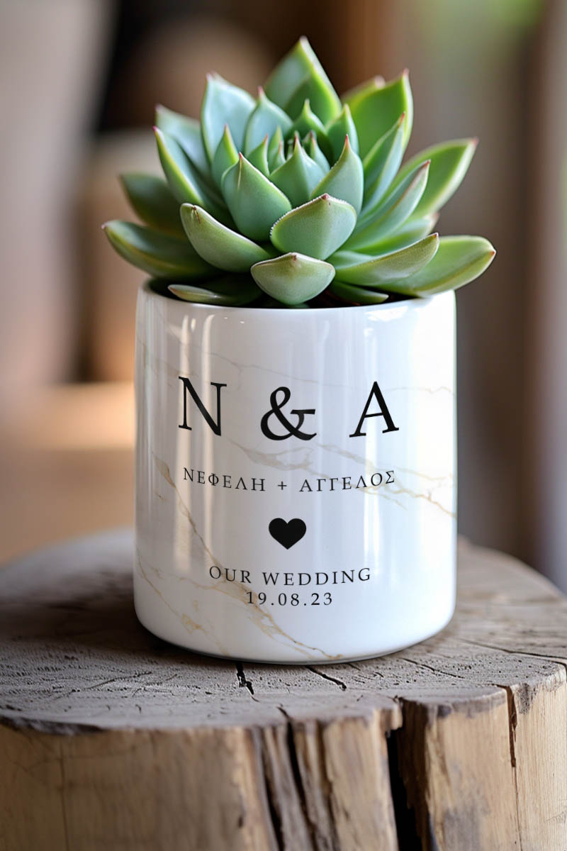 Κατασκευασμένα από υψηλής ποιότητας υλικά, τα γλαστράκια προσφέρουν ανθεκτικότητα και αξιοπιστία, εξασφαλίζοντας ότι θα απολαύσετε την ομορφιά τους για πολλά χρόνια. Είτε χρησιμοποιηθούν μόνα τους είτε σε συνδυασμό με άλλες διακοσμητικές προτάσεις, τα προσωποποιημένα γλαστράκια αναβαθμίζουν άμεσα τον χώρο σας με στιλ και προσωπικότητα.