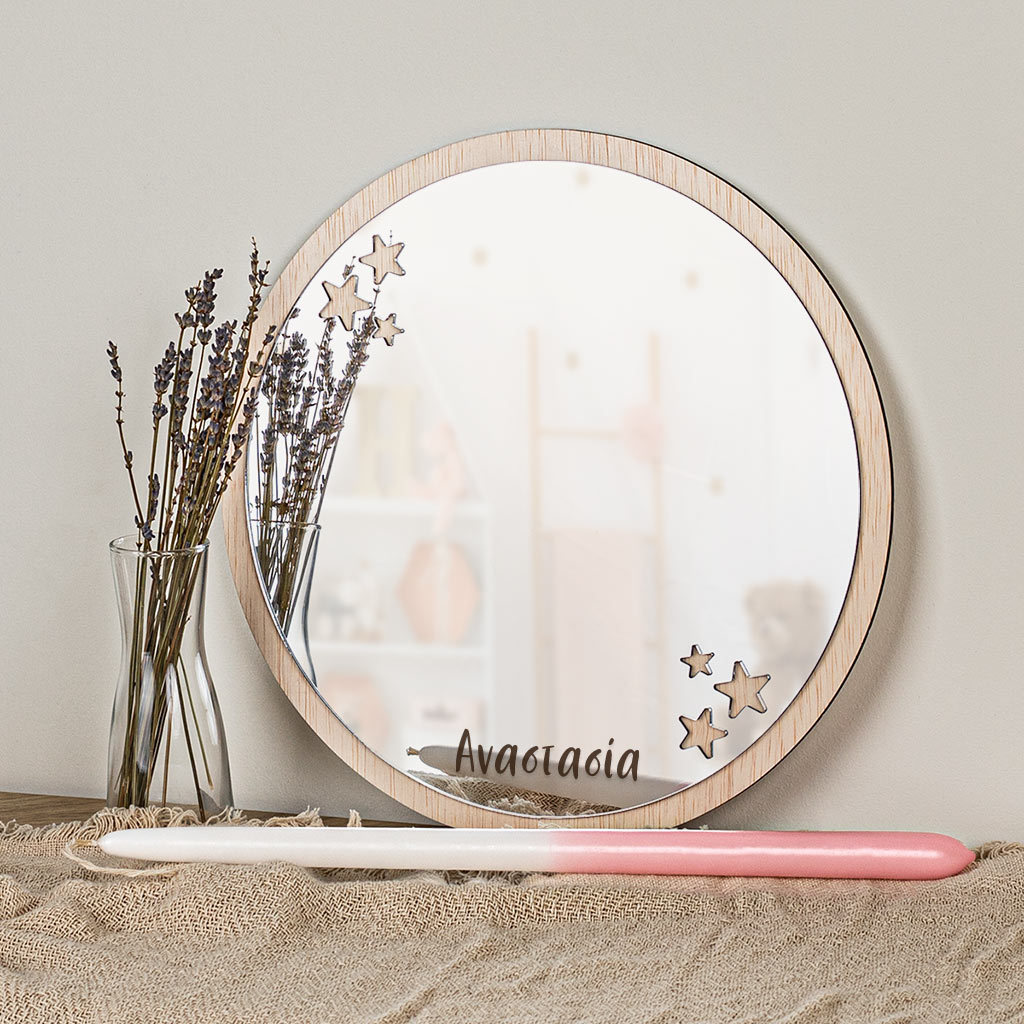 Άθραυστος παιδικός καθρέφτης με όνομα & γαντζάκι για να κρεμαστεί σε τοίχο + ΔΩΡΟ Λαμπάδα!