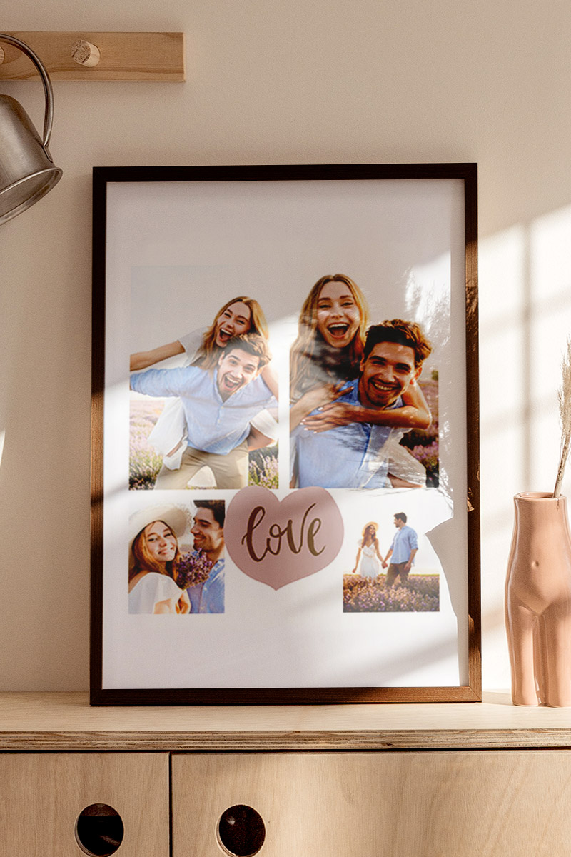 Κάνουμε πιο εύκολο από ποτέ τον τρόπο με τον οποίο μπορείτε να δημιουργήσετε online τα δικά σας έργα τέχνης. Προσθέστε στις κορνίζες σας μονογράμματα, κείμενα, λεζάντες και πολλά άλλα. Σε λίγα λεπτά, μπορείτε να παραγγείλετε ένα έργο τέχνης που θα μετατρέψει έναν συνηθισμένο τοίχο στο σημείο εστίασης οποιουδήποτε δωματίου. Μπορείτε να δημιουργήσετε κορνίζες με τις καθημερινές σας στιγμές, το Γάμο σας, τη Βάπτιση του παιδιού σας, τα ταξίδια σας, τις διακοπές σας, τις σημαντικές στιγμές σας και πολλά άλλα.