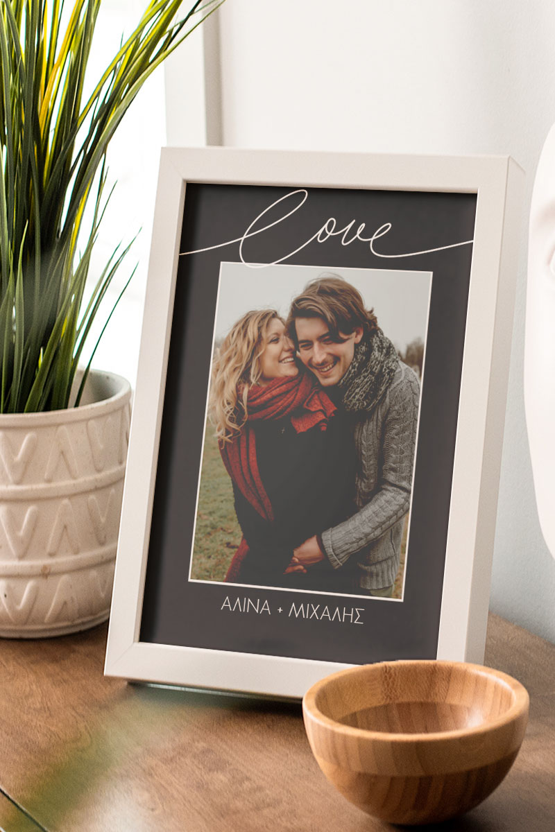 Κάνουμε πιο εύκολο από ποτέ τον τρόπο με τον οποίο μπορείτε να δημιουργήσετε online τα δικά σας έργα τέχνης. Προσθέστε στις κορνίζες σας μονογράμματα, κείμενα, λεζάντες και πολλά άλλα. Σε λίγα λεπτά, μπορείτε να παραγγείλετε ένα έργο τέχνης που θα μετατρέψει έναν συνηθισμένο τοίχο στο σημείο εστίασης οποιουδήποτε δωματίου. Μπορείτε να δημιουργήσετε κορνίζες με τις καθημερινές σας στιγμές, το Γάμο σας, τη Βάπτιση του παιδιού σας, τα ταξίδια σας, τις διακοπές σας, τις σημαντικές στιγμές σας και πολλά άλλα.