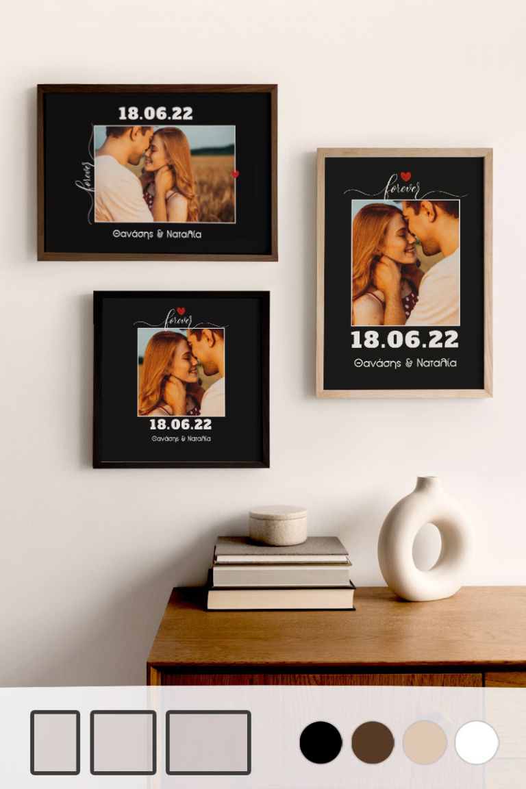 Κάνουμε πιο εύκολο από ποτέ τον τρόπο με τον οποίο μπορείτε να δημιουργήσετε online τα δικά σας έργα τέχνης. Προσθέστε στις κορνίζες σας μονογράμματα, κείμενα, λεζάντες και πολλά άλλα. Σε λίγα λεπτά, μπορείτε να παραγγείλετε ένα έργο τέχνης που θα μετατρέψει έναν συνηθισμένο τοίχο στο σημείο εστίασης οποιουδήποτε δωματίου. Μπορείτε να δημιουργήσετε κορνίζες με τις καθημερινές σας στιγμές, το Γάμο σας, τη Βάπτιση του παιδιού σας, τα ταξίδια σας, τις διακοπές σας, τις σημαντικές στιγμές σας και πολλά άλλα.