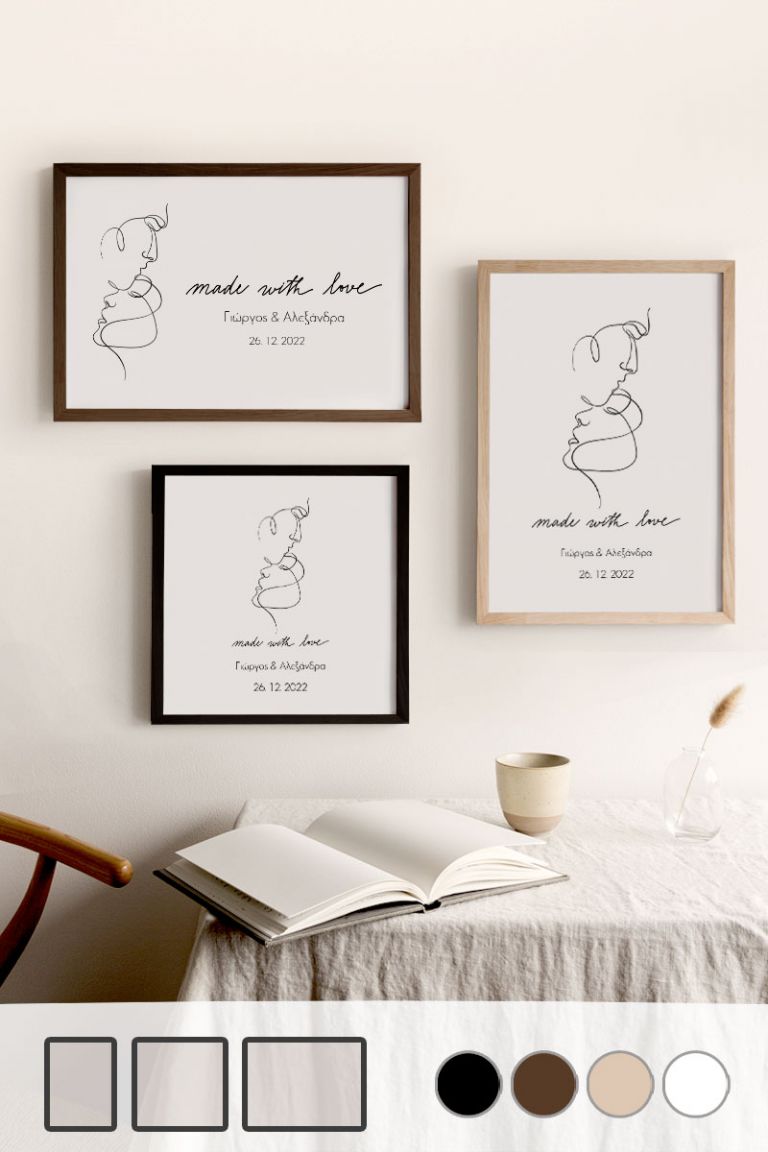 Κάνουμε πιο εύκολο από ποτέ τον τρόπο με τον οποίο μπορείτε να δημιουργήσετε online τα δικά σας έργα τέχνης. Προσθέστε στις κορνίζες σας μονογράμματα, κείμενα, λεζάντες και πολλά άλλα. Σε λίγα λεπτά, μπορείτε να παραγγείλετε ένα έργο τέχνης που θα μετατρέψει έναν συνηθισμένο τοίχο στο σημείο εστίασης οποιουδήποτε δωματίου. Μπορείτε να δημιουργήσετε κορνίζες με τις καθημερινές σας στιγμές, το Γάμο σας, τη Βάπτιση του παιδιού σας, τα ταξίδια σας, τις διακοπές σας, τις σημαντικές στιγμές σας και πολλά άλλα.