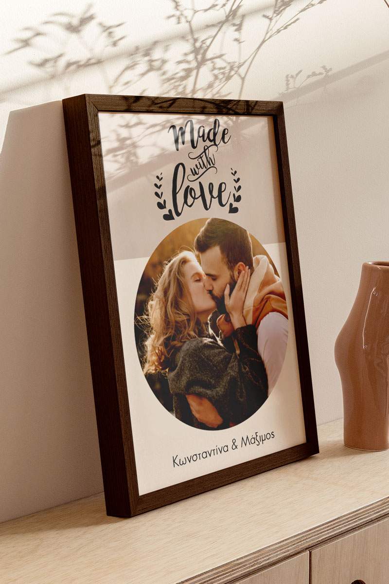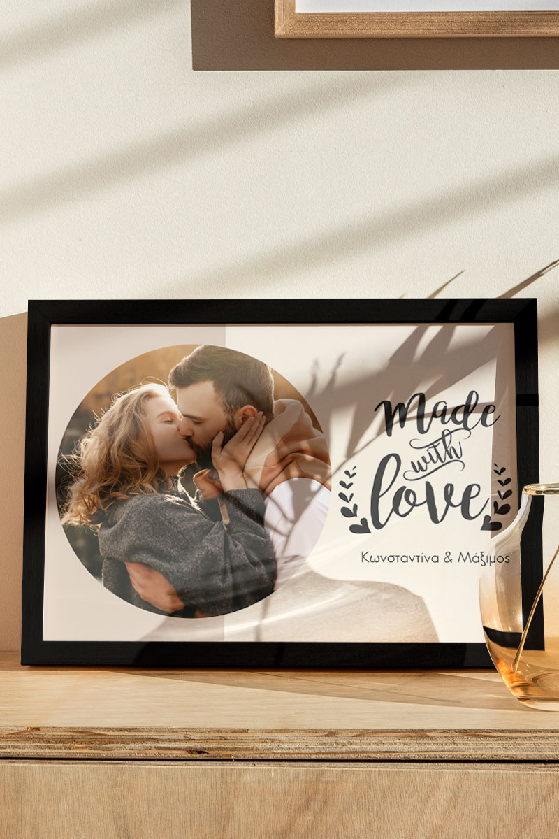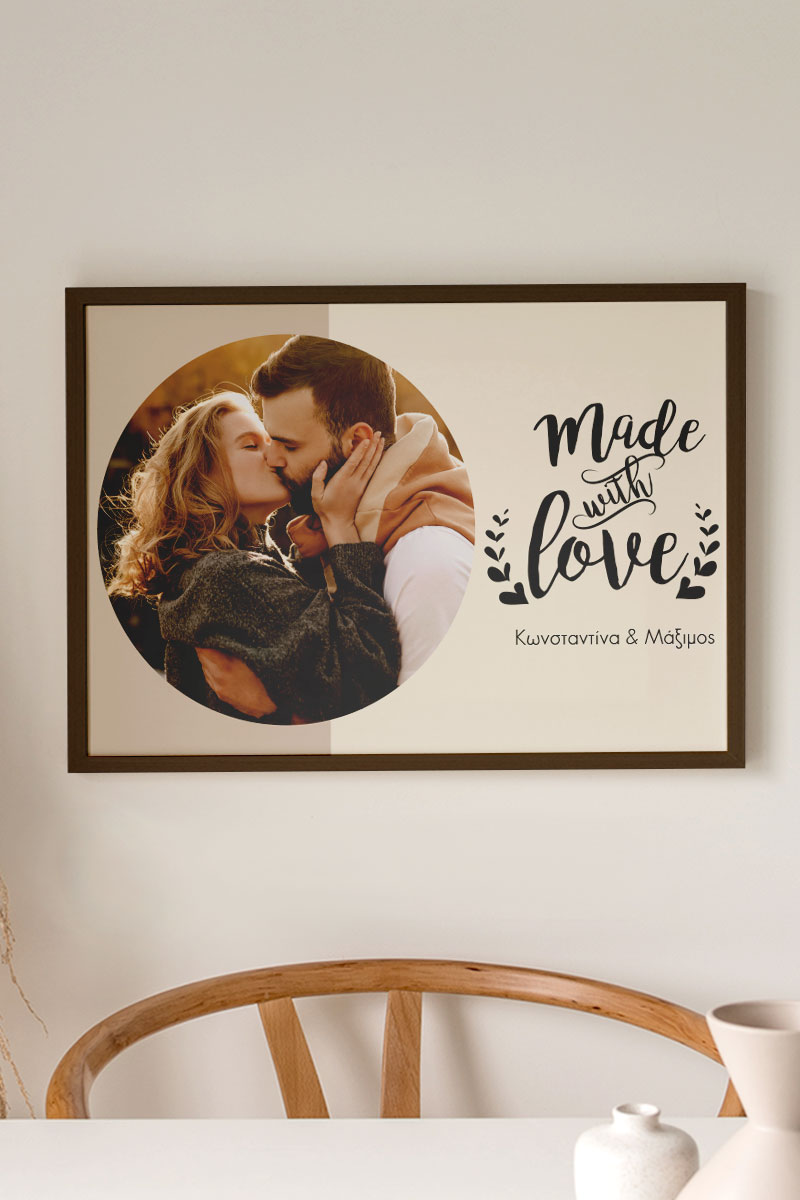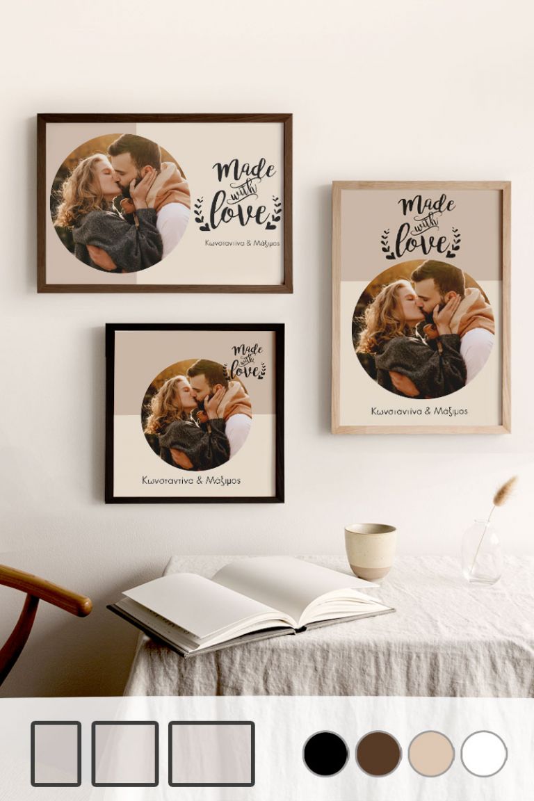 Κάνουμε πιο εύκολο από ποτέ τον τρόπο με τον οποίο μπορείτε να δημιουργήσετε online τα δικά σας έργα τέχνης. Προσθέστε στις κορνίζες σας μονογράμματα, κείμενα, λεζάντες και πολλά άλλα. Σε λίγα λεπτά, μπορείτε να παραγγείλετε ένα έργο τέχνης που θα μετατρέψει έναν συνηθισμένο τοίχο στο σημείο εστίασης οποιουδήποτε δωματίου. Μπορείτε να δημιουργήσετε κορνίζες με τις καθημερινές σας στιγμές, το Γάμο σας, τη Βάπτιση του παιδιού σας, τα ταξίδια σας, τις διακοπές σας, τις σημαντικές στιγμές σας και πολλά άλλα.