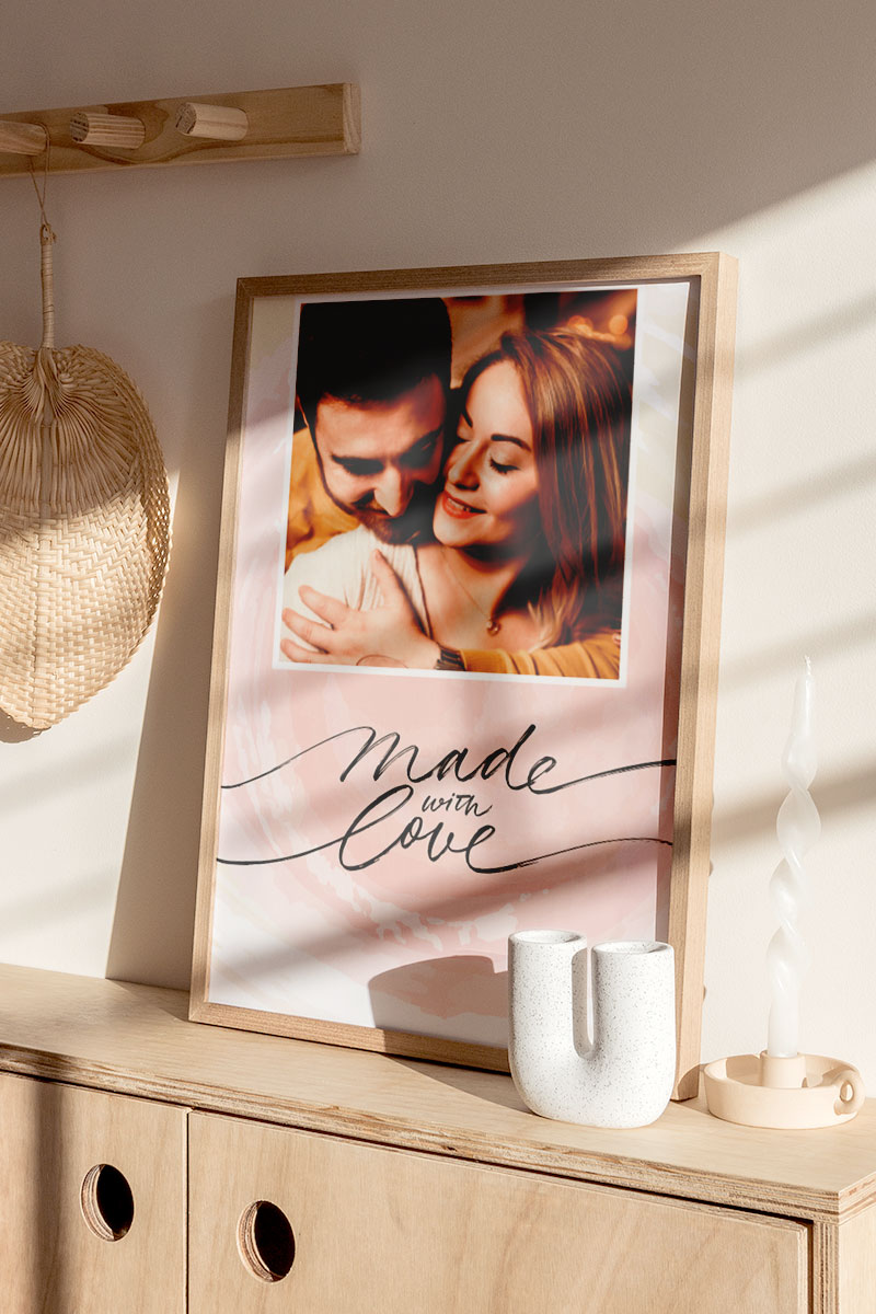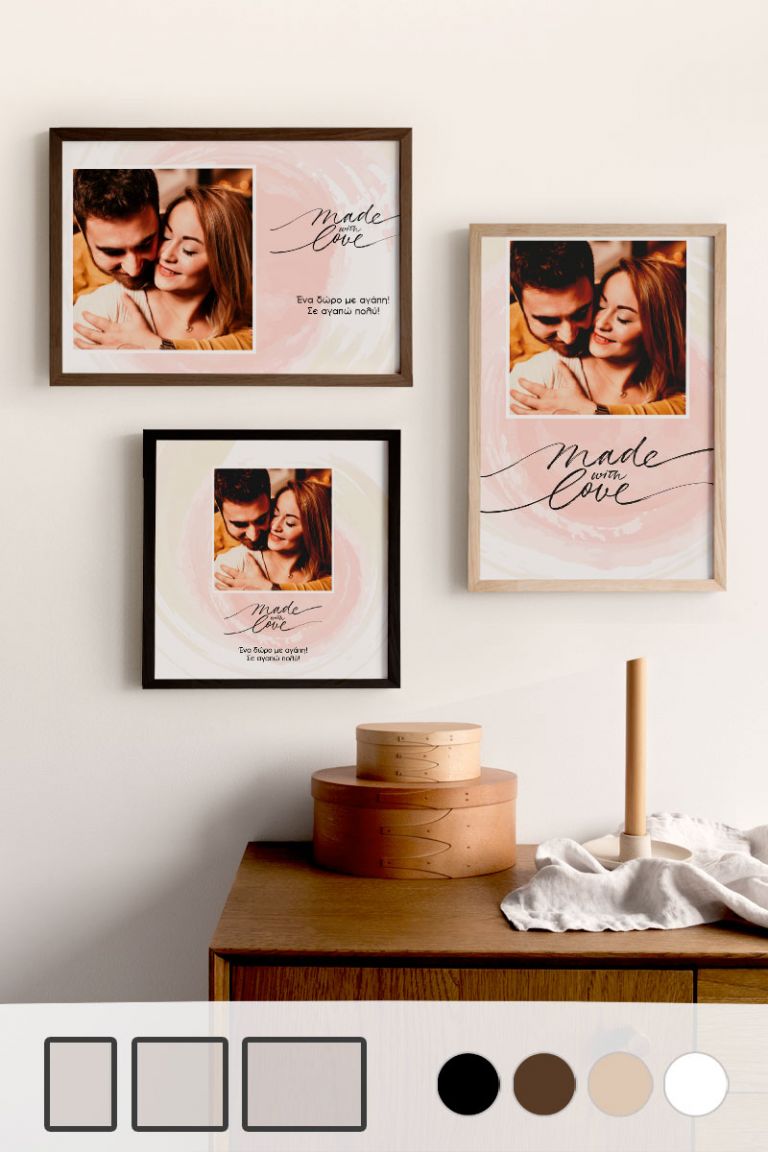 Κάνουμε πιο εύκολο από ποτέ τον τρόπο με τον οποίο μπορείτε να δημιουργήσετε online τα δικά σας έργα τέχνης. Προσθέστε στις κορνίζες σας μονογράμματα, κείμενα, λεζάντες και πολλά άλλα. Σε λίγα λεπτά, μπορείτε να παραγγείλετε ένα έργο τέχνης που θα μετατρέψει έναν συνηθισμένο τοίχο στο σημείο εστίασης οποιουδήποτε δωματίου. Μπορείτε να δημιουργήσετε κορνίζες με τις καθημερινές σας στιγμές, το Γάμο σας, τη Βάπτιση του παιδιού σας, τα ταξίδια σας, τις διακοπές σας, τις σημαντικές στιγμές σας και πολλά άλλα.