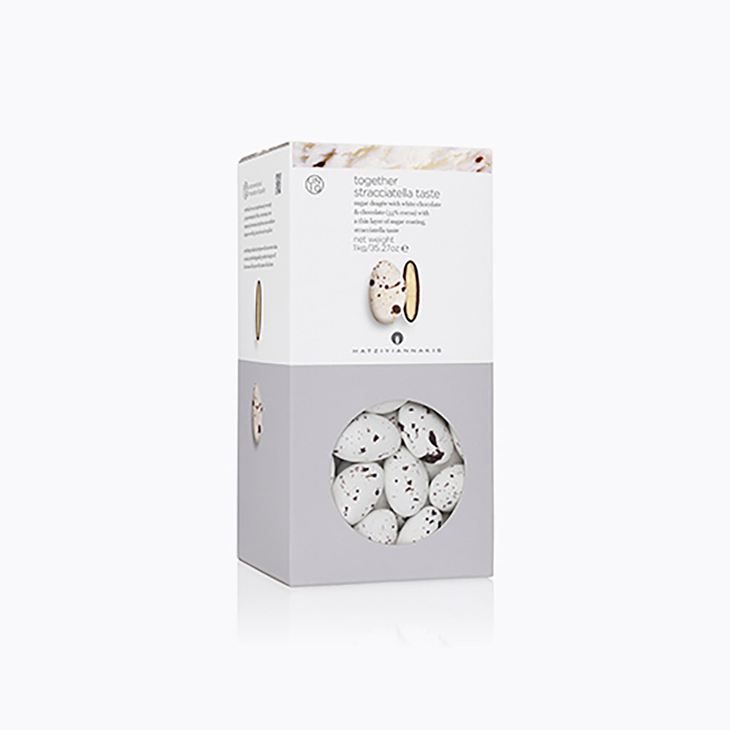 Ολόκληρο καβουρδισμένο αμύγδαλο & λευκή σοκολάτα με λεπτή επικάλυψη ζάχαρης, γεύση stracciatella.