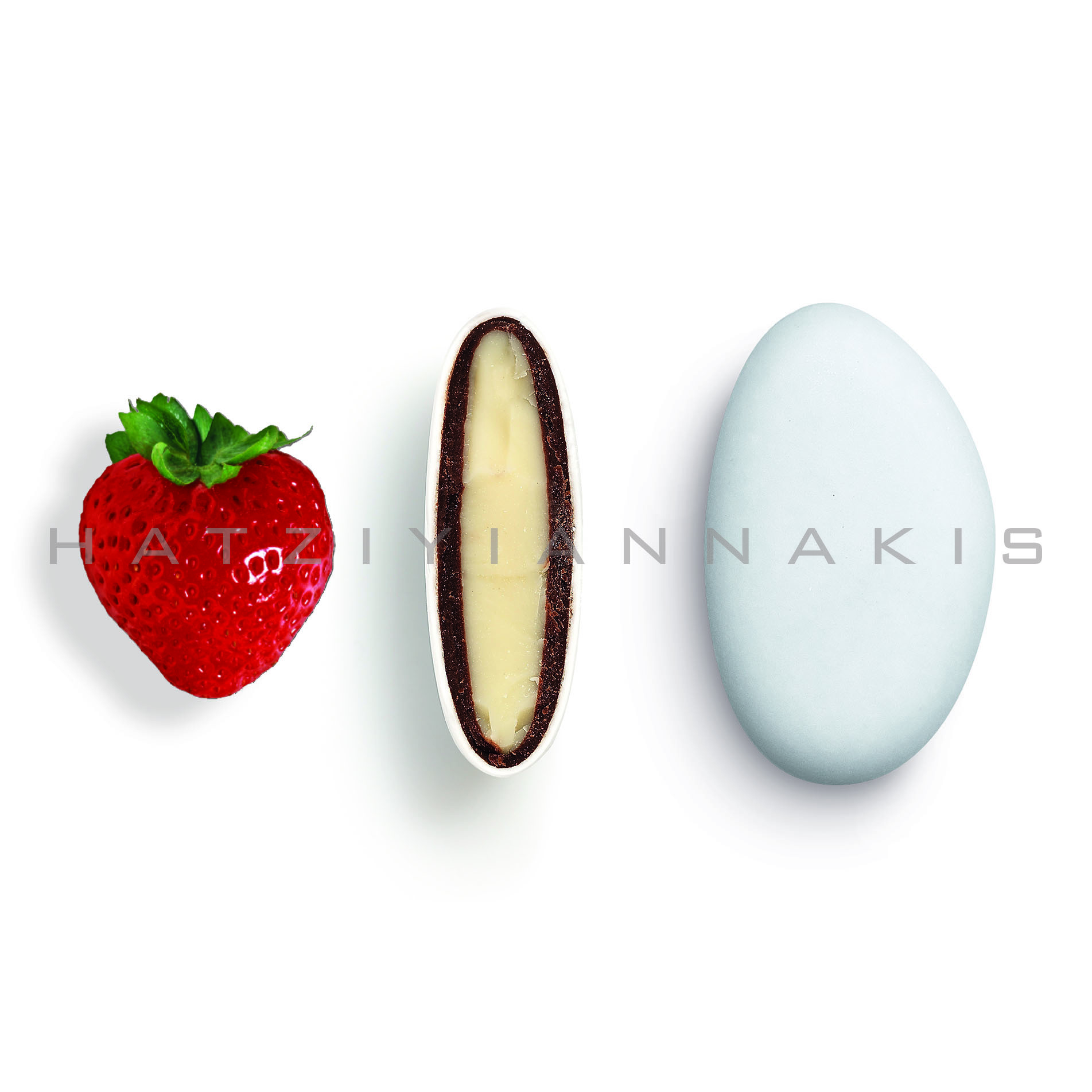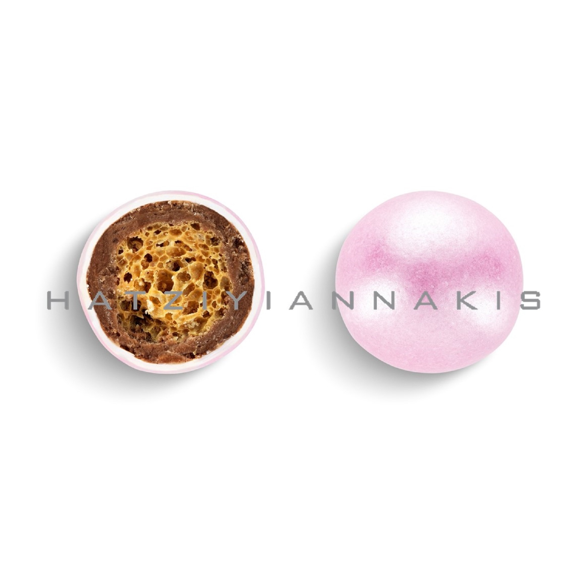 Ολόκληρο καβουρδισμένο αμύγδαλο & λευκή σοκολάτα με λεπτή επικάλυψη ζάχαρης, γεύση φράουλα.