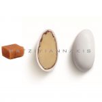 Ολόκληρο καβουρδισμένο αμύγδαλο & λευκή σοκολάτα με λεπτή επικάλυψη ζάχαρης, γεύση καραμέλα.