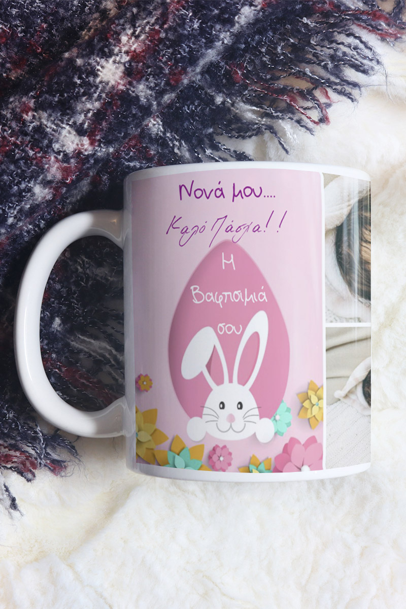 Εάν ψάχνετε ένα μοναδικό πασχαλινό δώρο, για την νονά , τον νονό , την θεία , τον θείο , την γιαγιά ή τον παππού  δημιουργήστε και χαρίστε του μία προσωποποιημένη κούπα & λάβετε πίσω τον ενθουσιασμό και την αγάπη του! Όποιος κι αν είναι ο αποδέκτης θα λατρέψει την ιδέα του ότι δημιουργήσατε κάτι μοναδικό, αποκλειστικά γι΄ αυτόν !