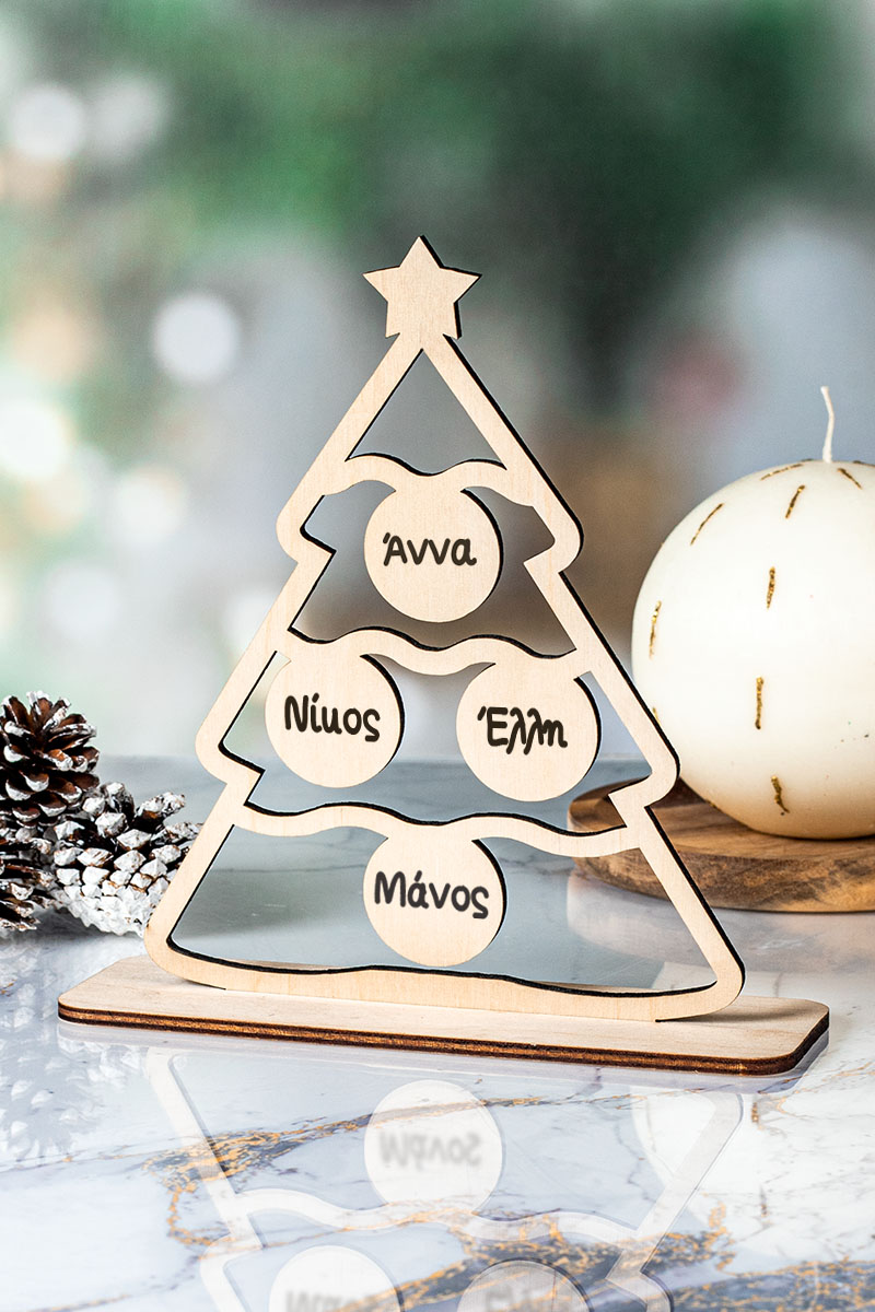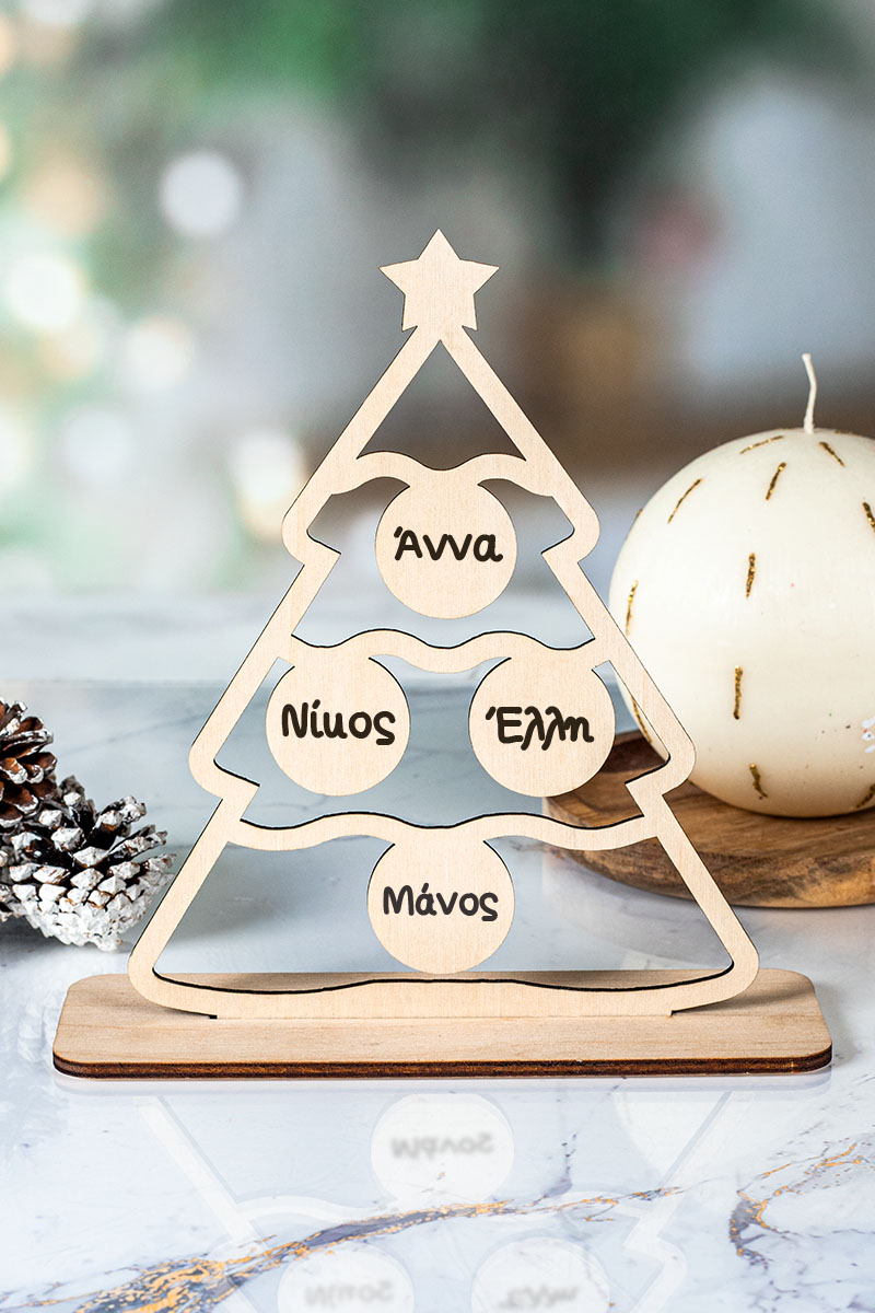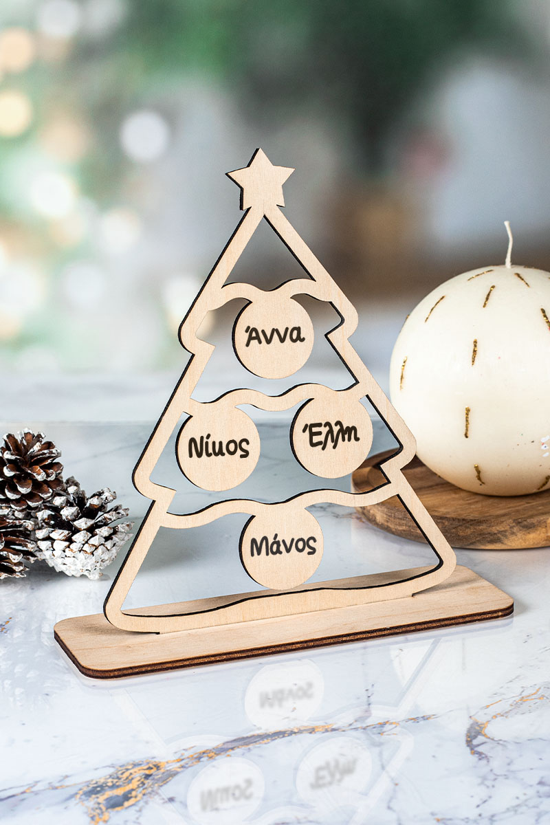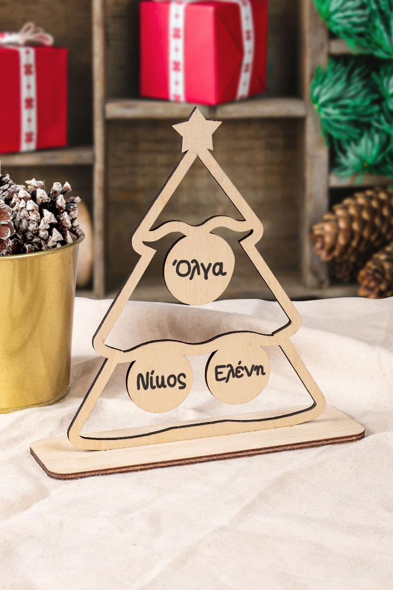 Ξύλινο Χριστουγεννιάτικο Επιτραπέζιο Δεντράκι, με 4 Ονόματα