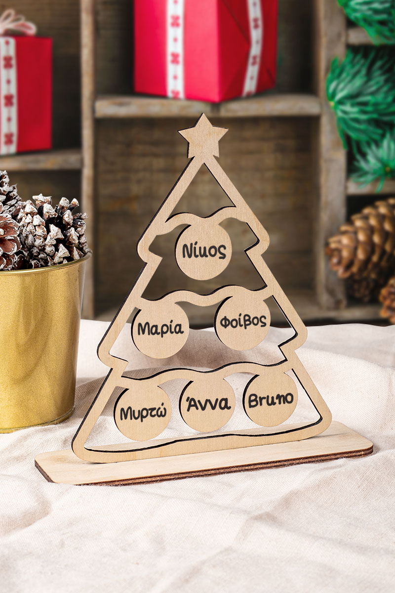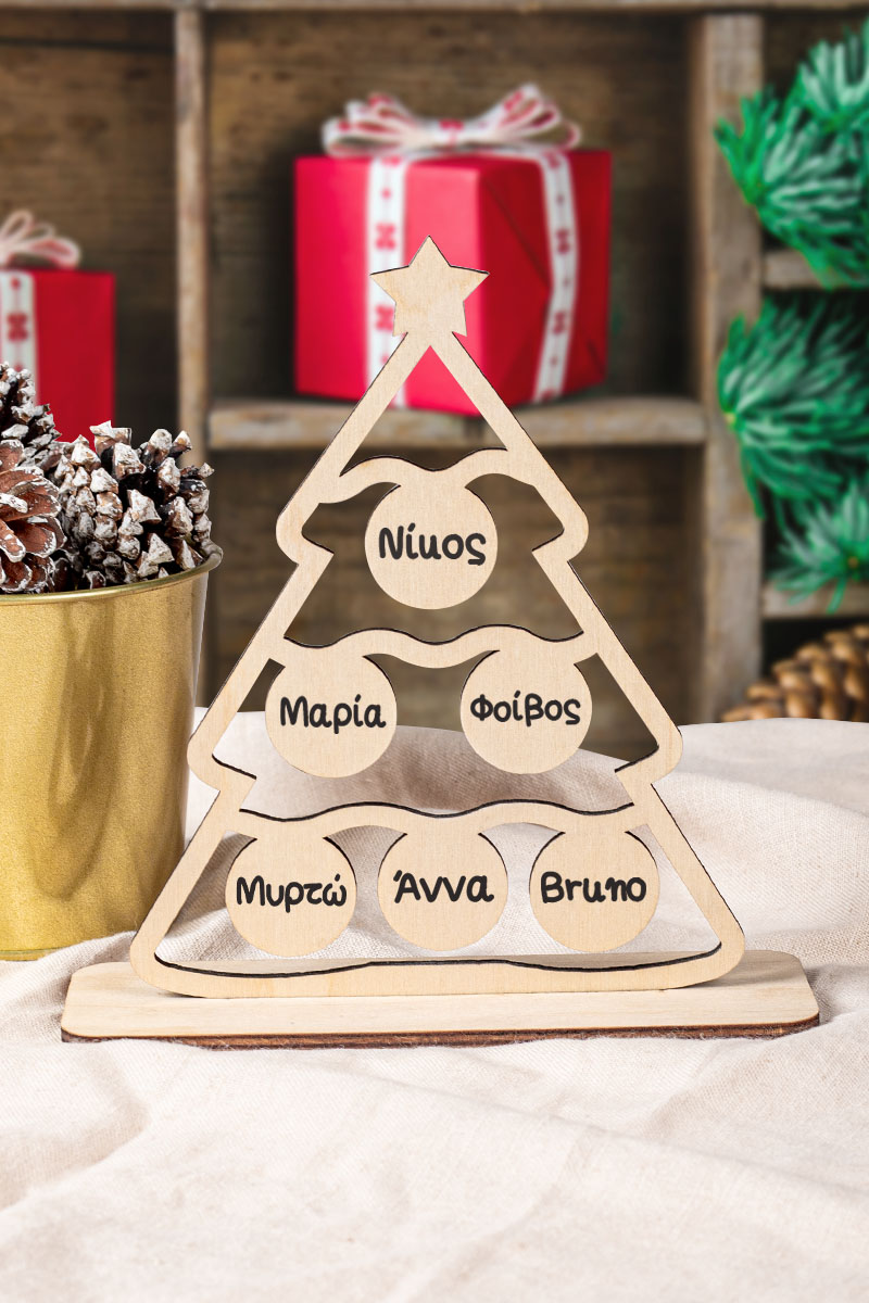 Ξύλινο Χριστουγεννιάτικο Επιτραπέζιο Δεντράκι, με 6 Ονόματα