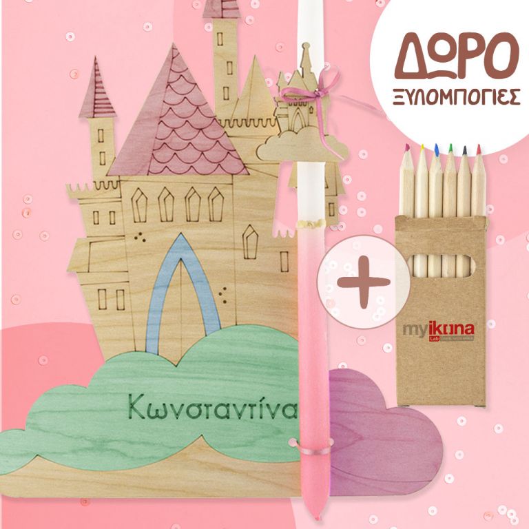Λαμπάδα σετ ζωγραφικής & διακόσμησης τοίχου! Η συσκευασία περιλαμβάνει mini ξυλομπογιές για να χρωματίστει το ξύλινο διακοσμητικό τοίχου!