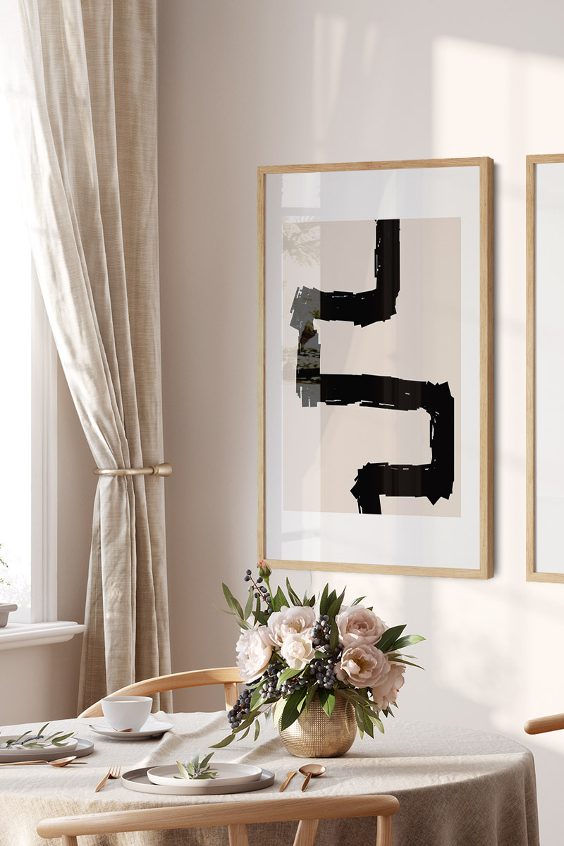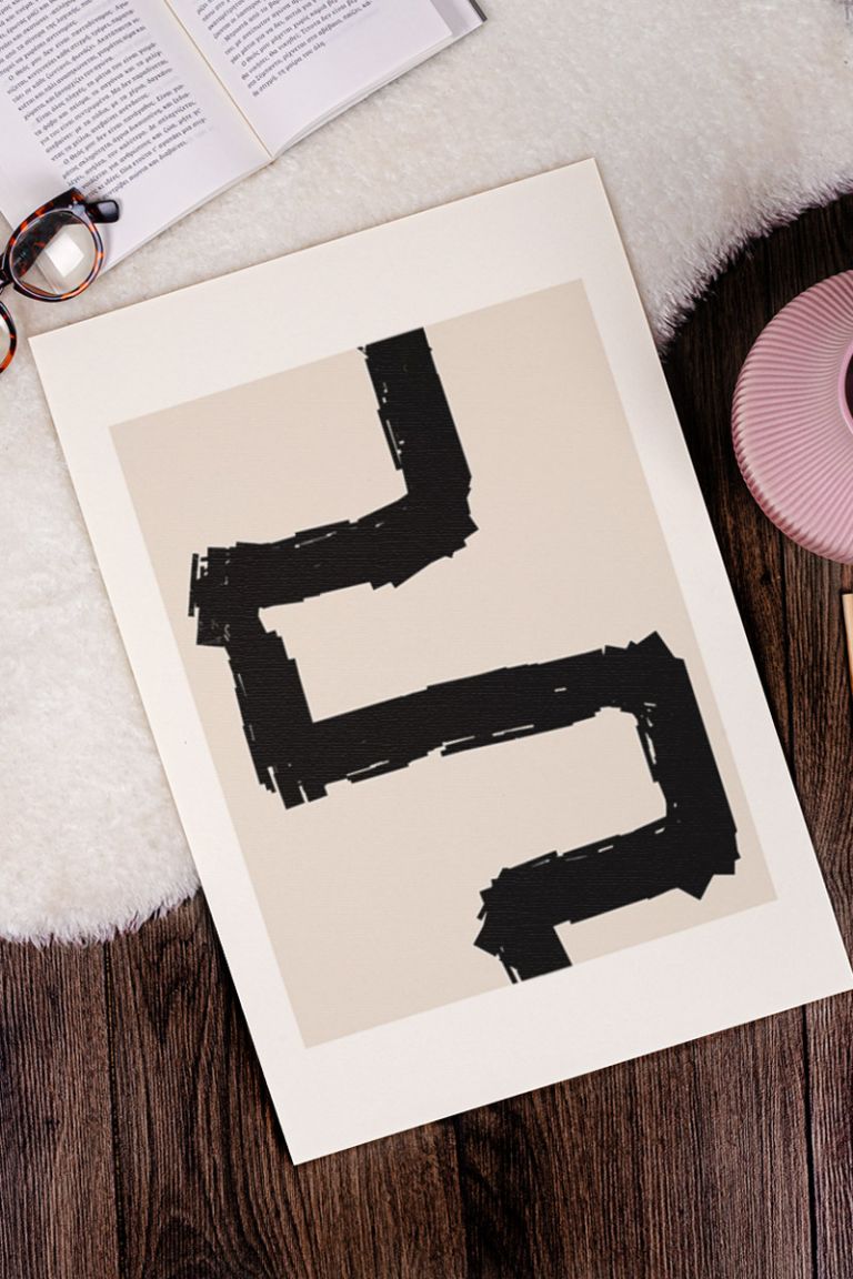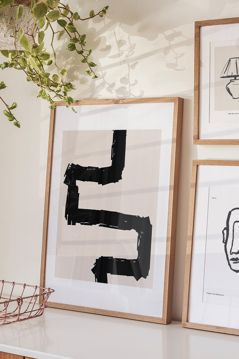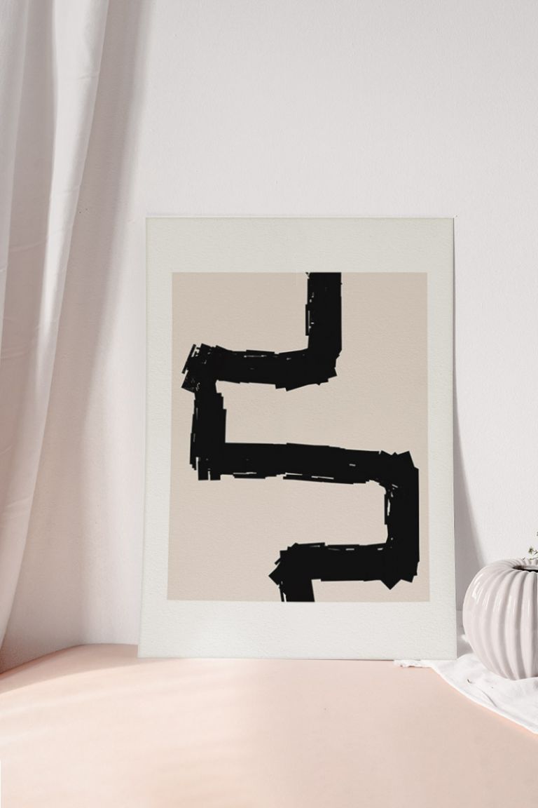 Line Art Black Abstract No64 Premium Poster